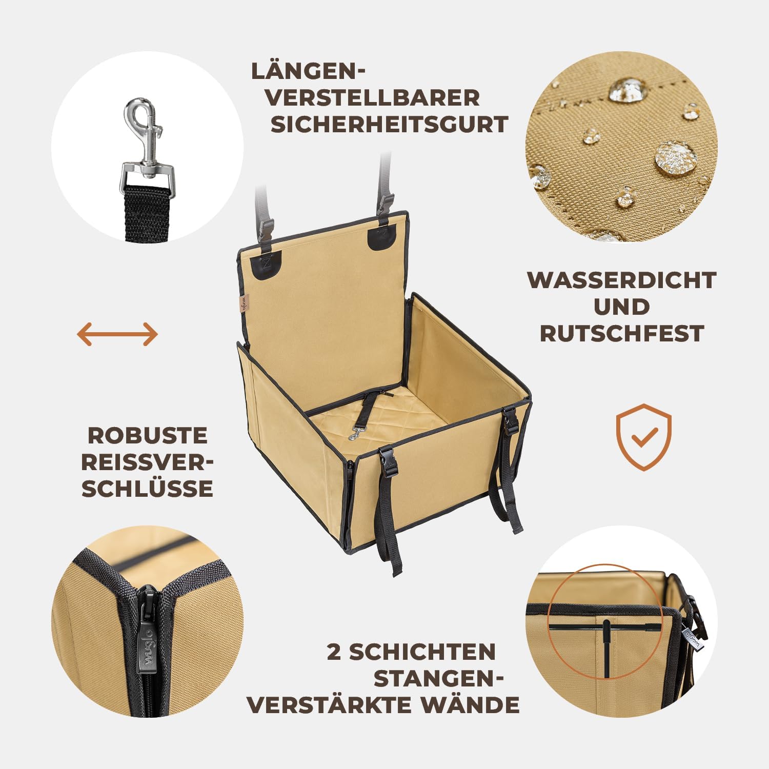 Extra Stabiler Hunde Autositz - Verstärkter Autositz für kleine und mittlere Hunde mit 4 Befestigung