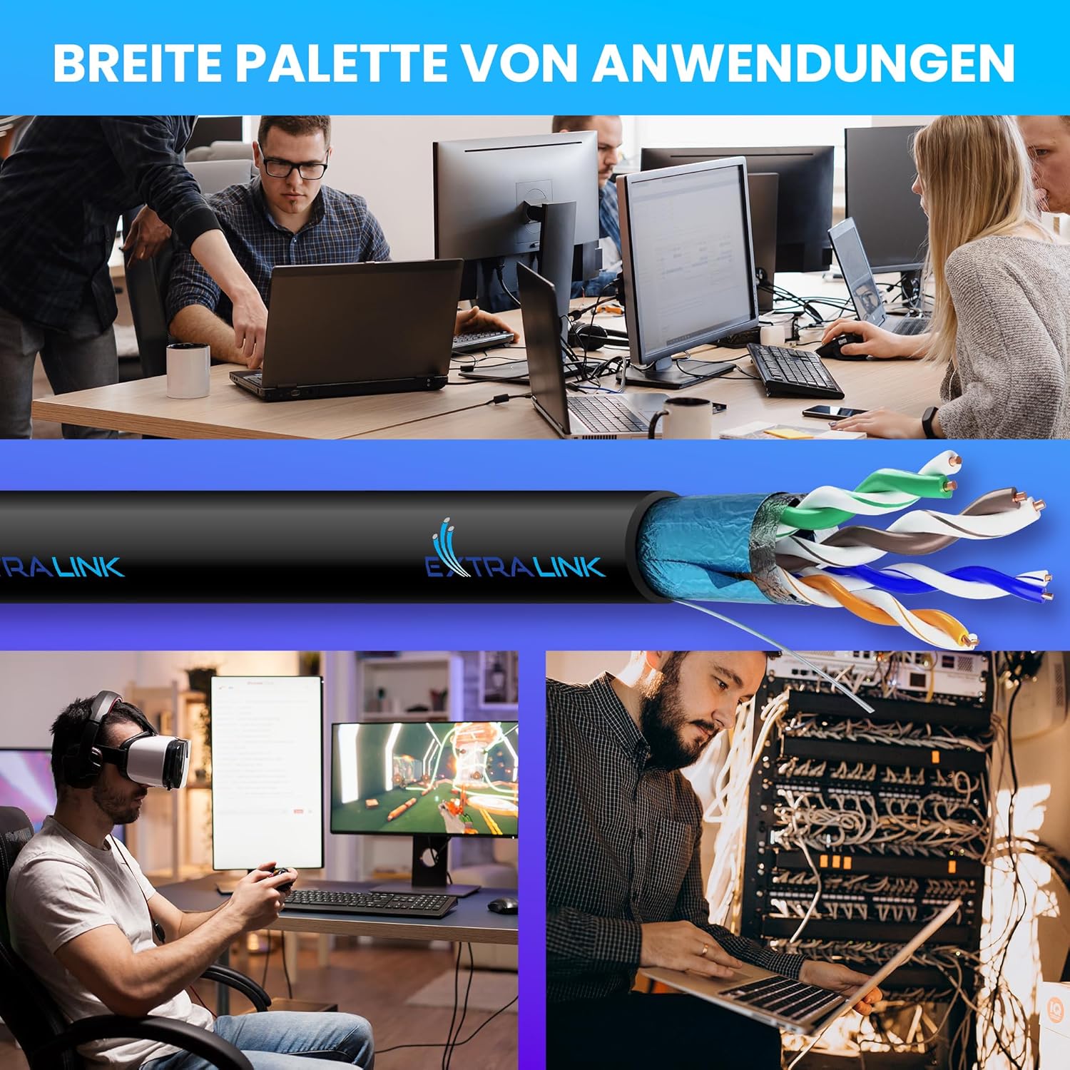 - Keine Sorgen mehr um instabile Verbindungen oder langsame Übertragungsgeschwindigkeiten. Mit unserem zuverlässigen LAN Kabel Rolle geniessen Sie eine stabile Internetverbindung ohne Unterbrechungen.