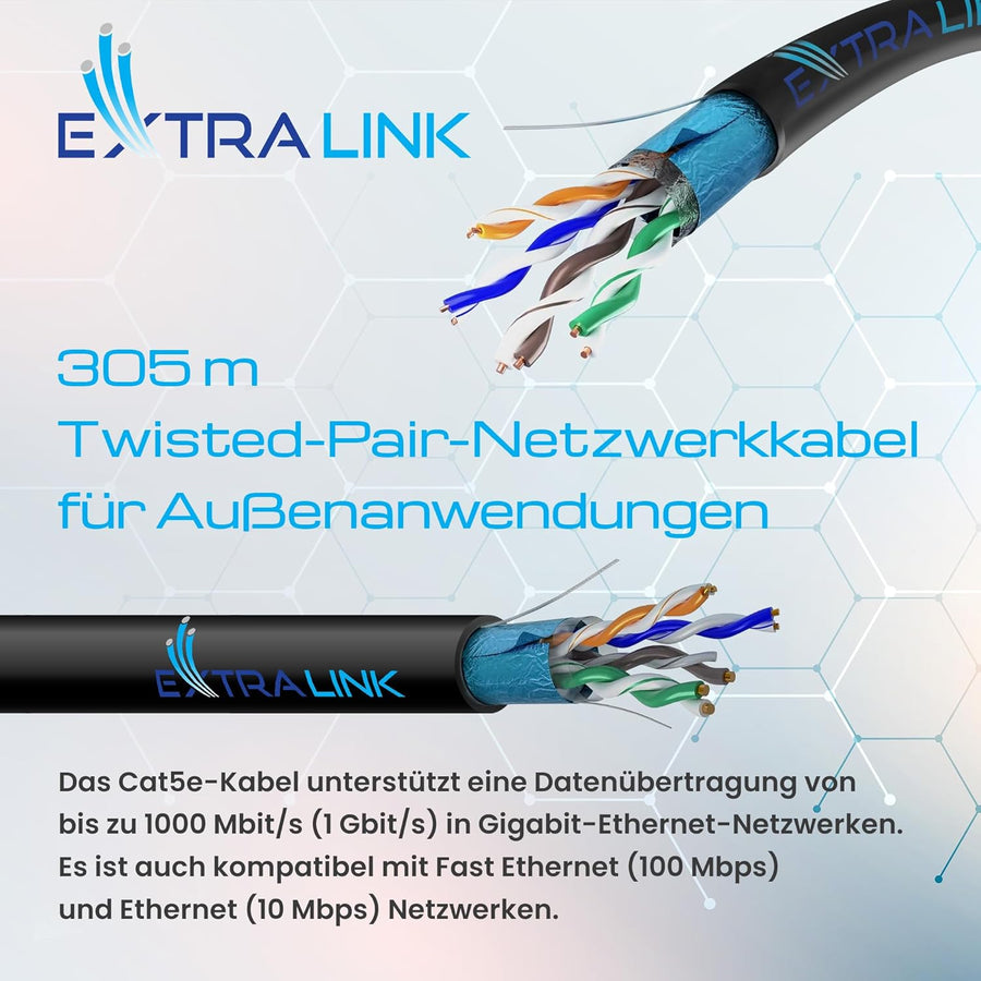 EXTRALINK CAT 5E FTP F/UTP Outdoor Ethernet Kabel 305 METER Extern Twisted Pair Internet Kabel LAN V
