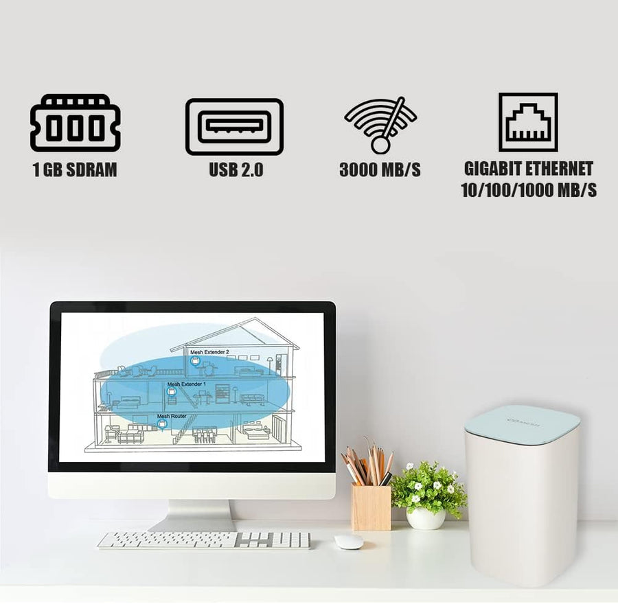 - Machen Sie sich keine Sorgen um schwaches WLAN Signal oder Verbindungsabbrüche. Das Mesh Router bietet leistungsstarke Abdeckung und automatische Wiederherstellung der Verbindung.