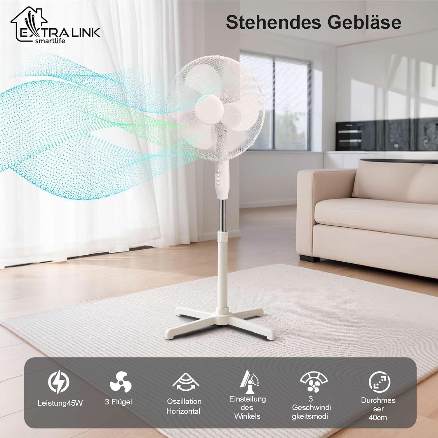 EXTRALINK Standventilator, Ventilator mit 3 Geschwindigkeitsstufen Durchmesser 40 cm Höhenverstellba
