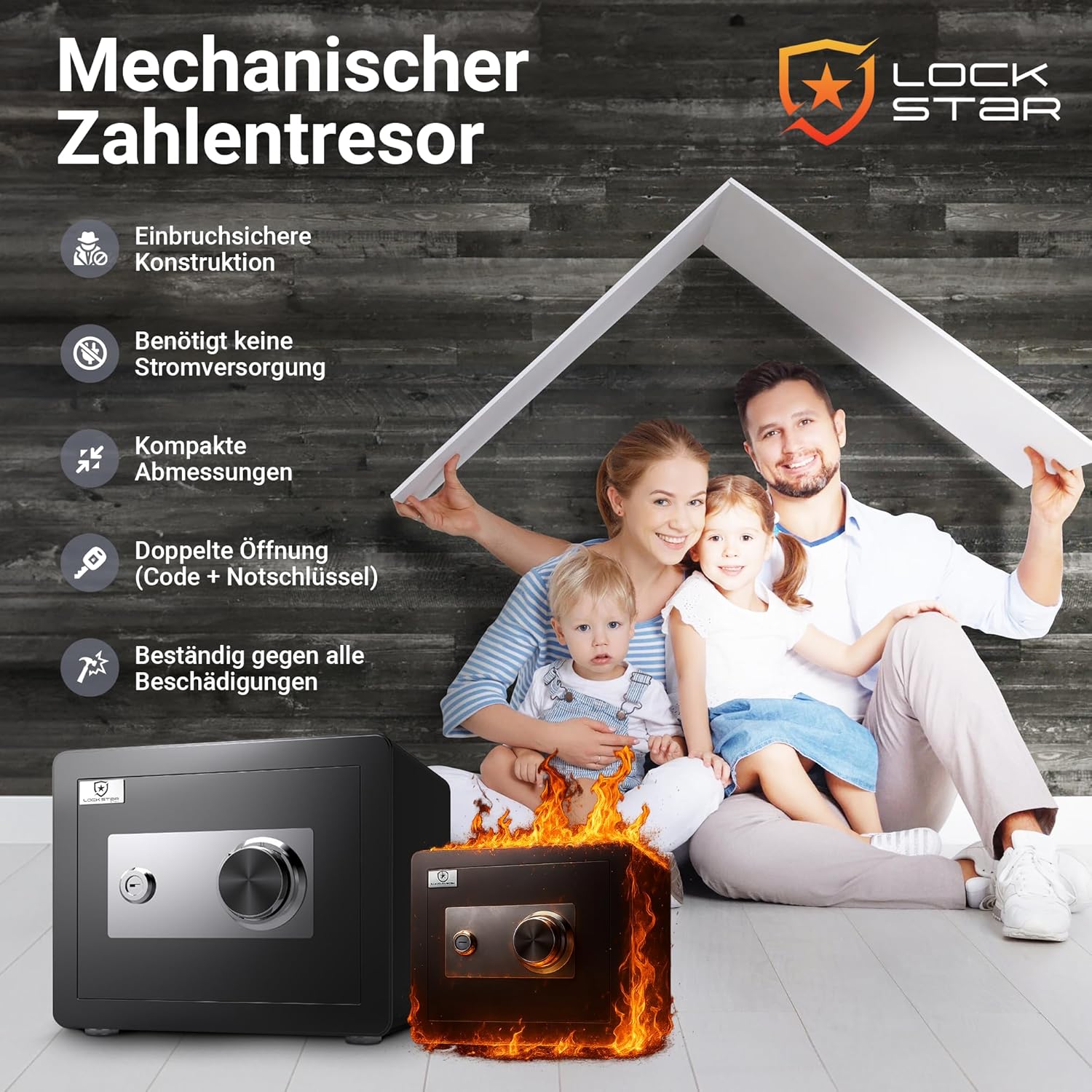 EXTRALINK Tresor für Zuhause – Safe mit Mechanischem Verschlusssystem, Kompakt ohne Batterien, Zahle
