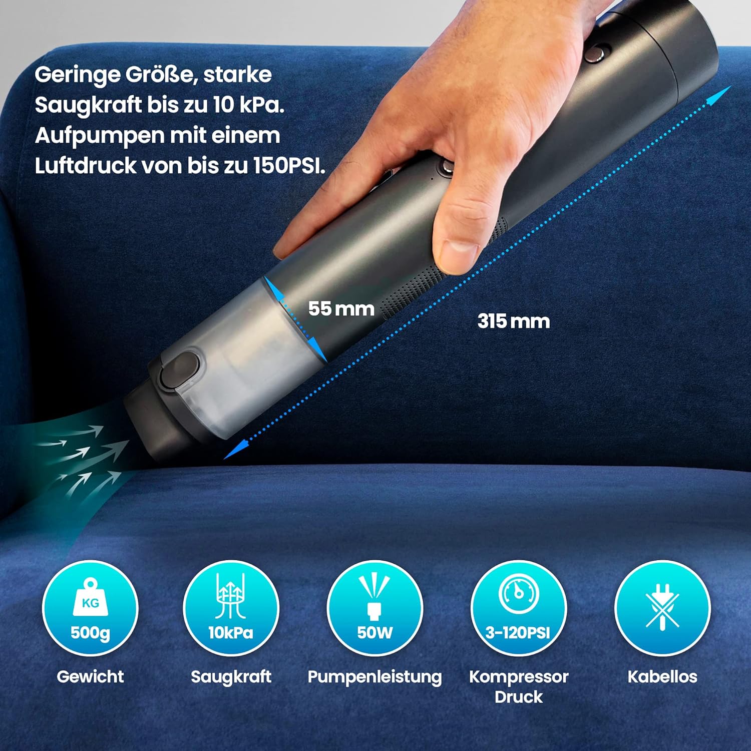 • Handstaubsauger und Kompressor in einem - Der neueste multifunktionale Handstaubsauger von Extralink hilft Ihnen, alle Arten von Oberflächen zu reinigen. Der kabellose und beutelloser Staubsauger verfügt über einen leistungsstarken Motor mit einer