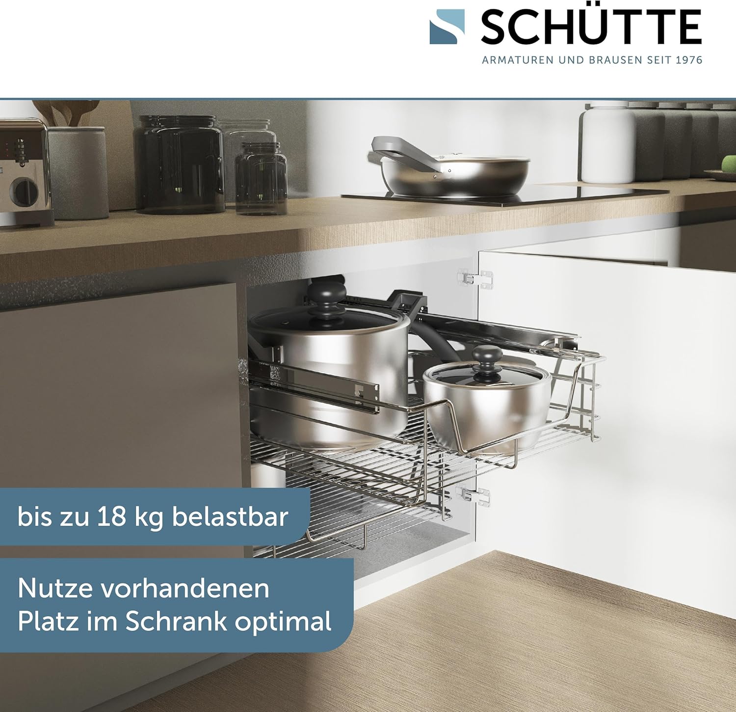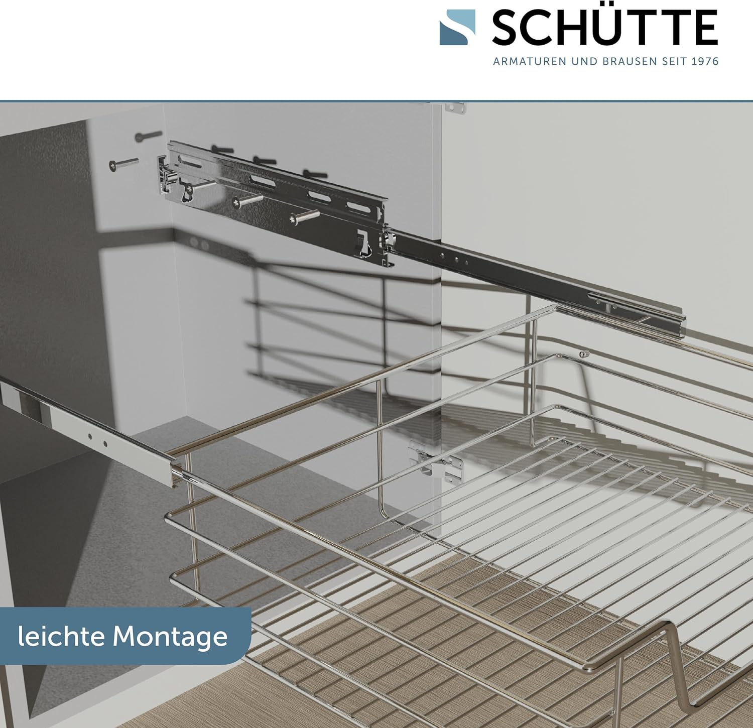 - ✔ QUALITÄT: Die ausziehbaren Schubladen Einsätze sind aus verchromtem Eisen hergestellt und können bis zu 25kg halten. Das Schienensystem - bestehend aus Auszugschienen und Einhängekorb - hält jederzeit sicher und stabil.
