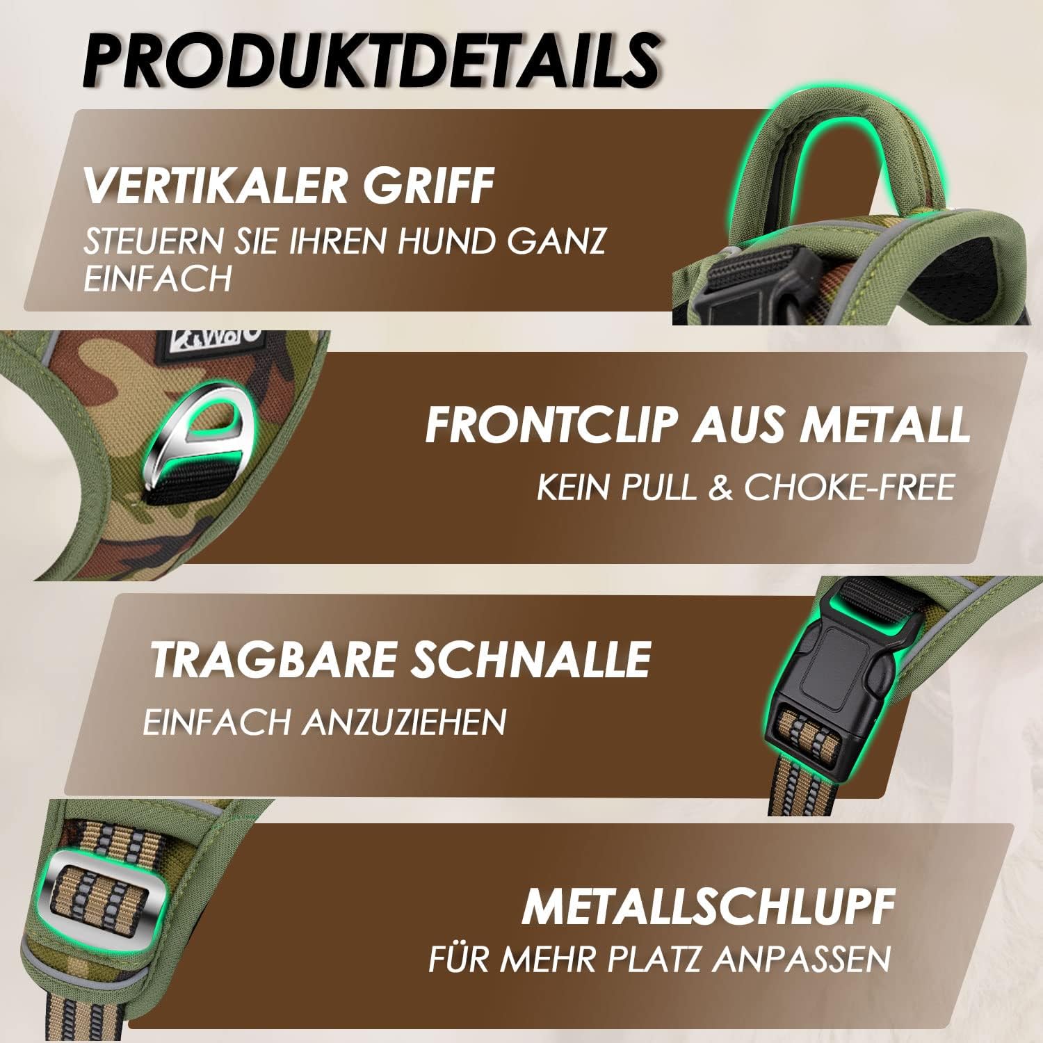 - 【vertical Handle Offer more even Stress 】: Forced auf drei Seiten Design helfen, gleichmässig zu verteilen Ziehen Druck in drei Teile des Körpers zu verhindern, zu ersticken. Es wäre einfacher, unsere Hunde zu kontrollieren.