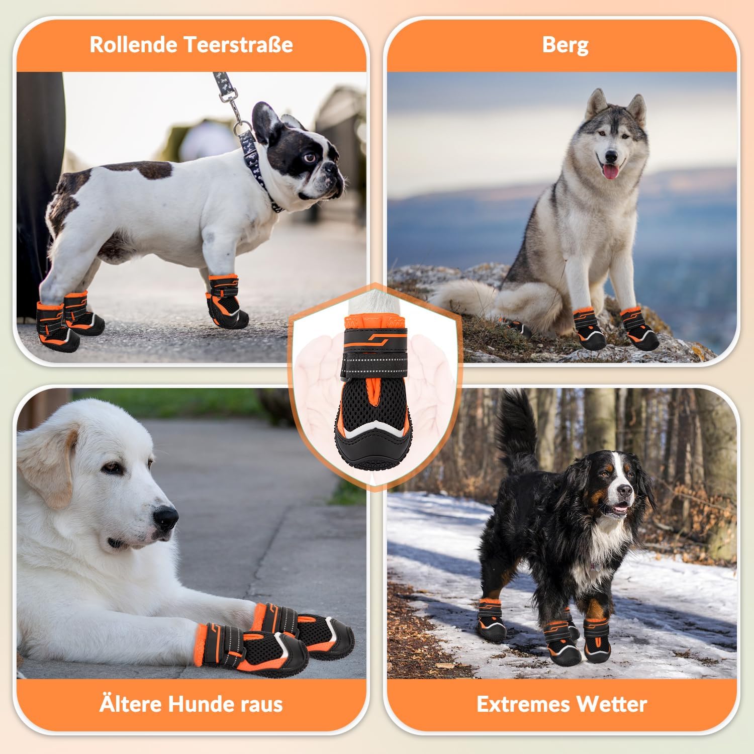 - 【Komfortabel & Atmungsaktiv】Die Hundeschuhe haben dreischichtiges Mesh und hochwertige Gummisohlen. Sie sind weich, bequem, atmungsaktiv, nicht stickig und verursachen kein Scheuern an den Pfoten. Sie schützen effektiv vor heissem Boden und scharfen
