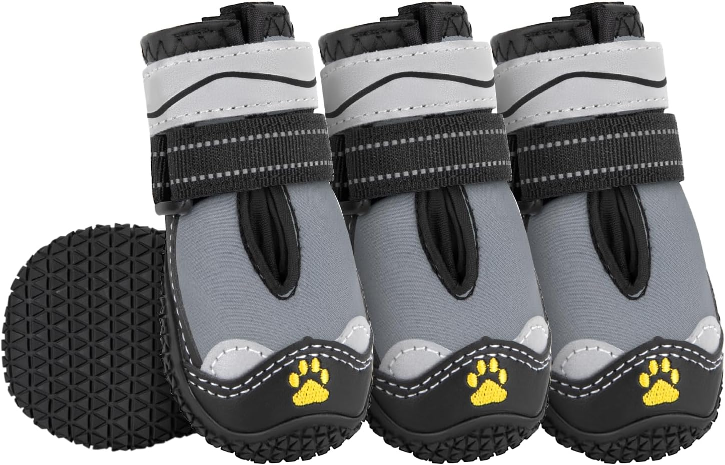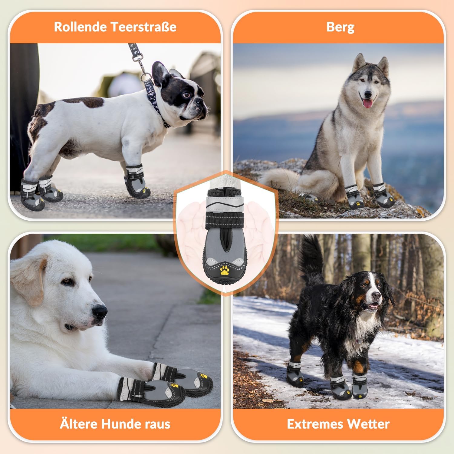 - 【Verstellbar und sicher】 Diese Hunde pfotenschutzstiefel haben eine grosse offene Naht und zwei verstellbare Klettverschlüsse, die für ein einfaches An- und Ausziehen an den Beinumfang Ihres Hundes angepasst werden können. Reflektierende