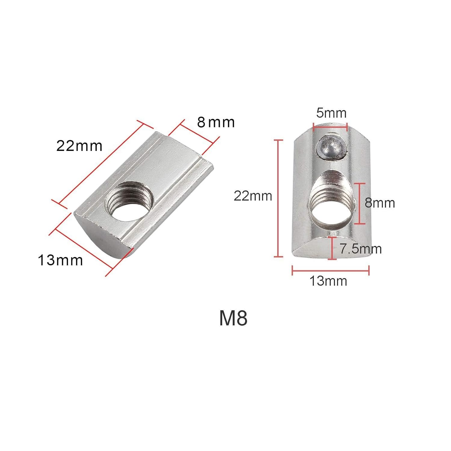 EYPINS 100x Nutensteine mit Kugel Nut 8, Nutensteine M8 mit Zentrierung Steg Federkugel Aluprofil Pr