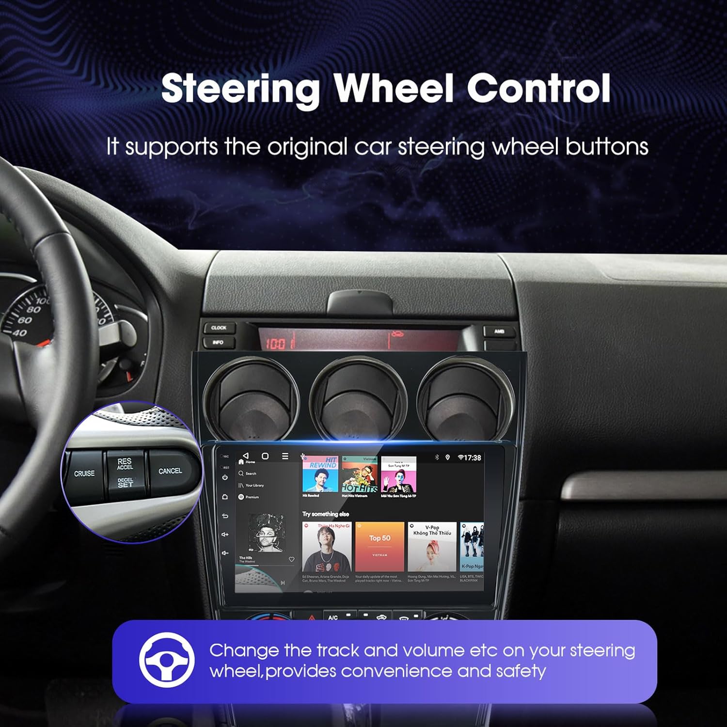 - 【Split-Screen-Funktion】 Sie können Spotify beim Navigieren verwenden oder die Website besuchen, während Sie Autoradio hören. ermöglicht die Ausführung von zwei Apps nebeneinander. Sie können Musik in Spotify hören, während Sie navigieren,