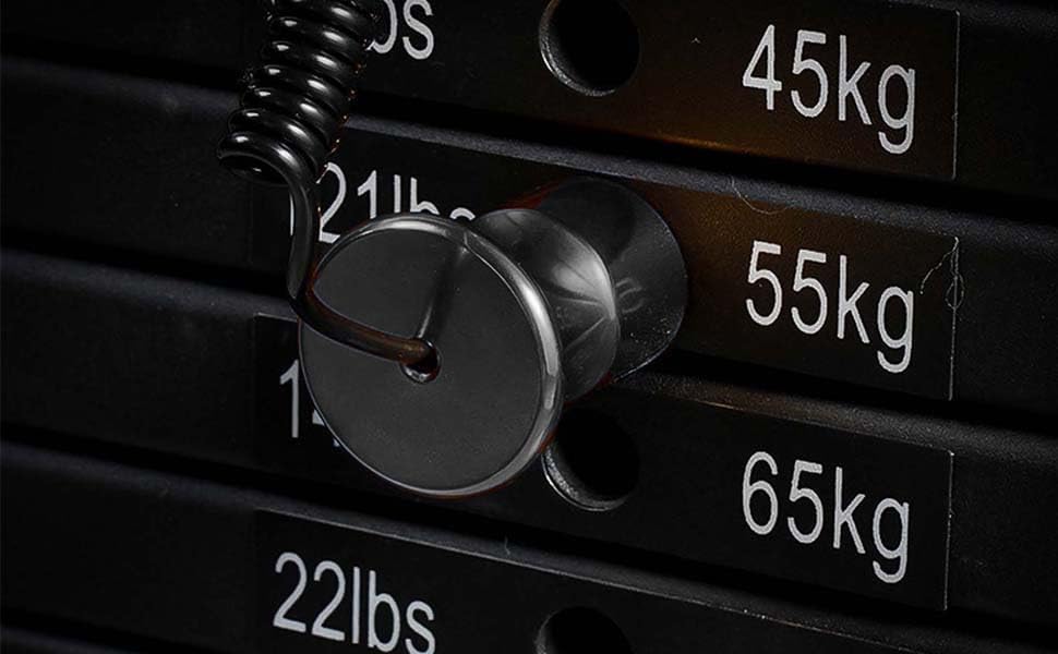 - 🏋️♂️【Starke Sicherheitsleistung】 Der Fitness-Gewichtsstapel des Fitnessgeräts kann effektiv im Gegengewichtsblock adsorbiert werden, um zu verhindern, dass Vibrationsstifte herunterfallen. Flexibles Anti-Loss-Seil und tragbare