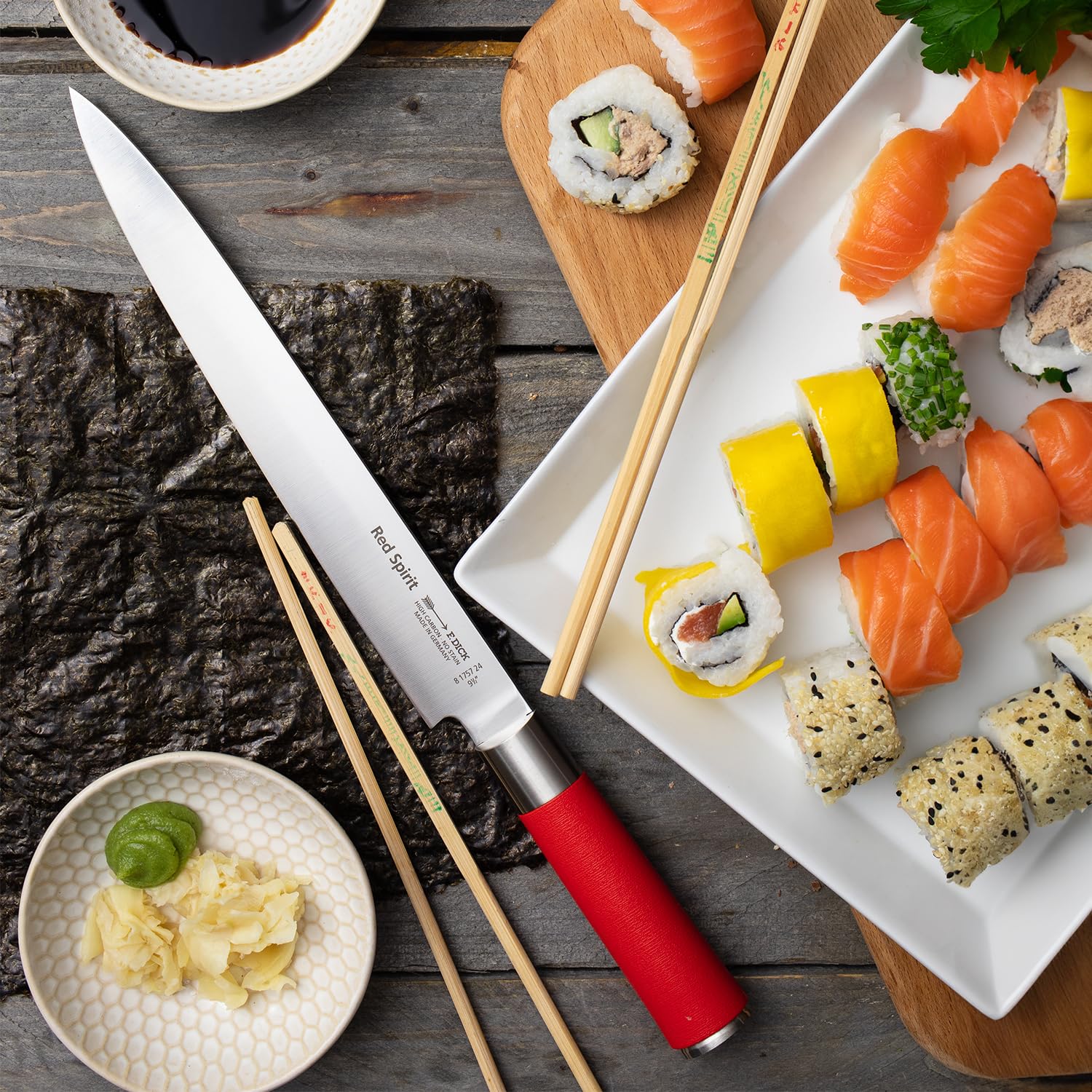 - Das Yanagiba wird auch als Sushimesser bezeichnet und wird zum Filetieren von Fisch und Fleisch verwendet. Seinen Namen verdankt das Messer seiner Klingenform, die feinen Blättern der Weide – japanisch Yanagi – nachempfunden ist.