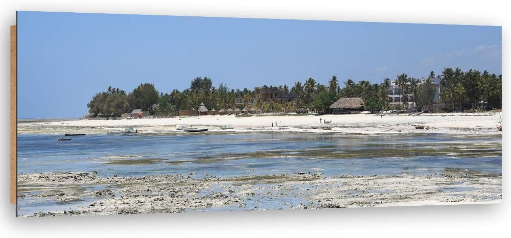 Feeby Deco Panel Landschaft Bild Kunstdruck modern Wasser und Strand Blau 120x40 cm Deko paneel 120x