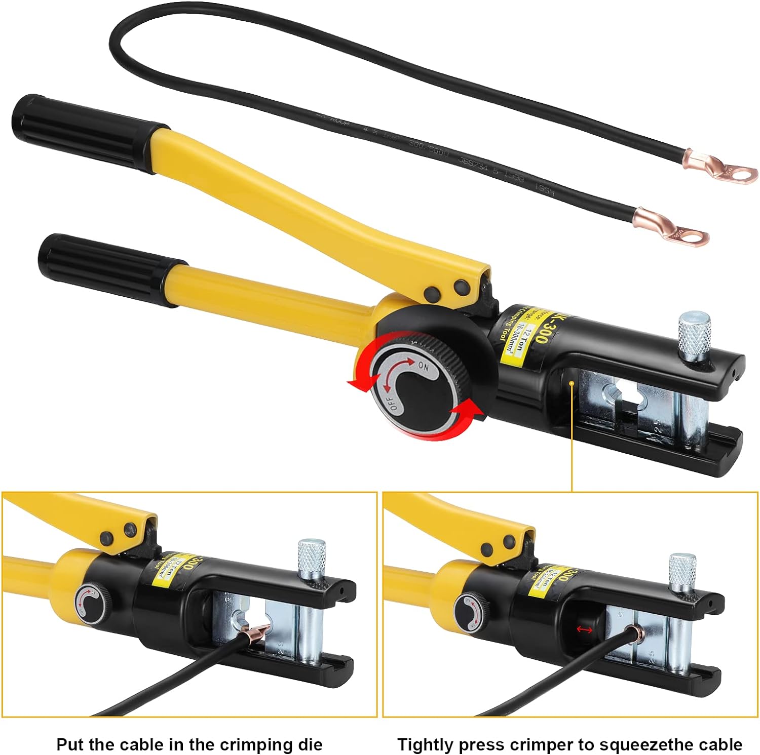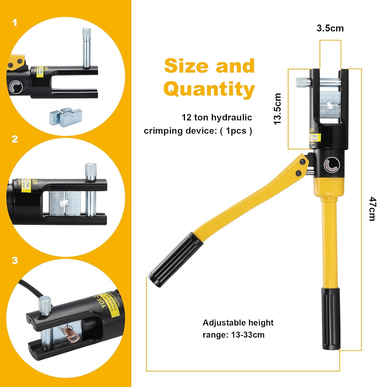 • 🥇【Crimpzange Presse Spezifikation】:Crimpen hydraulisch reicht von 8 bis 300 mm². Crimps von 10AWG bis 600MCM Kupfer- und Aluminiumdrähten. Hydraulische Kabelschuhzange maximale Crimpkraft: 12 Tonnen. Wenn der Druck den Maximalwert erreicht, wird