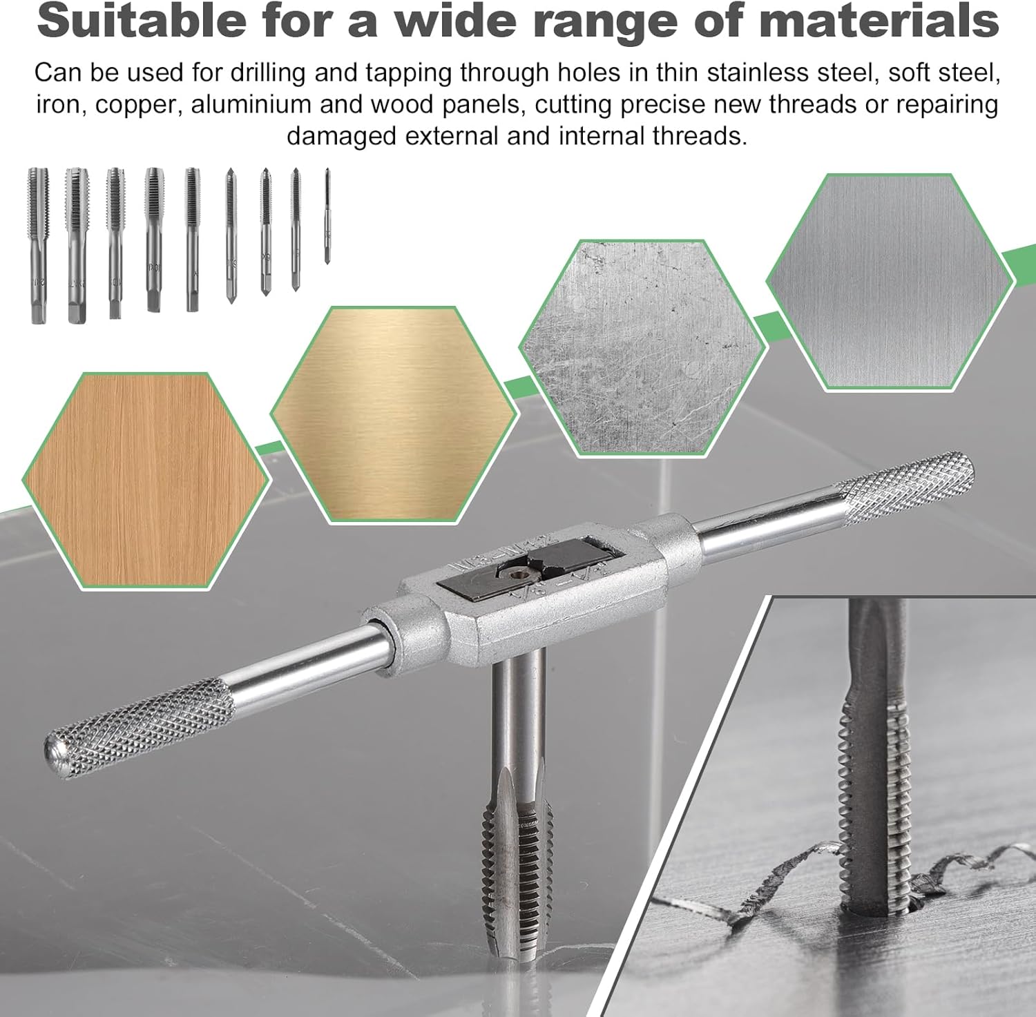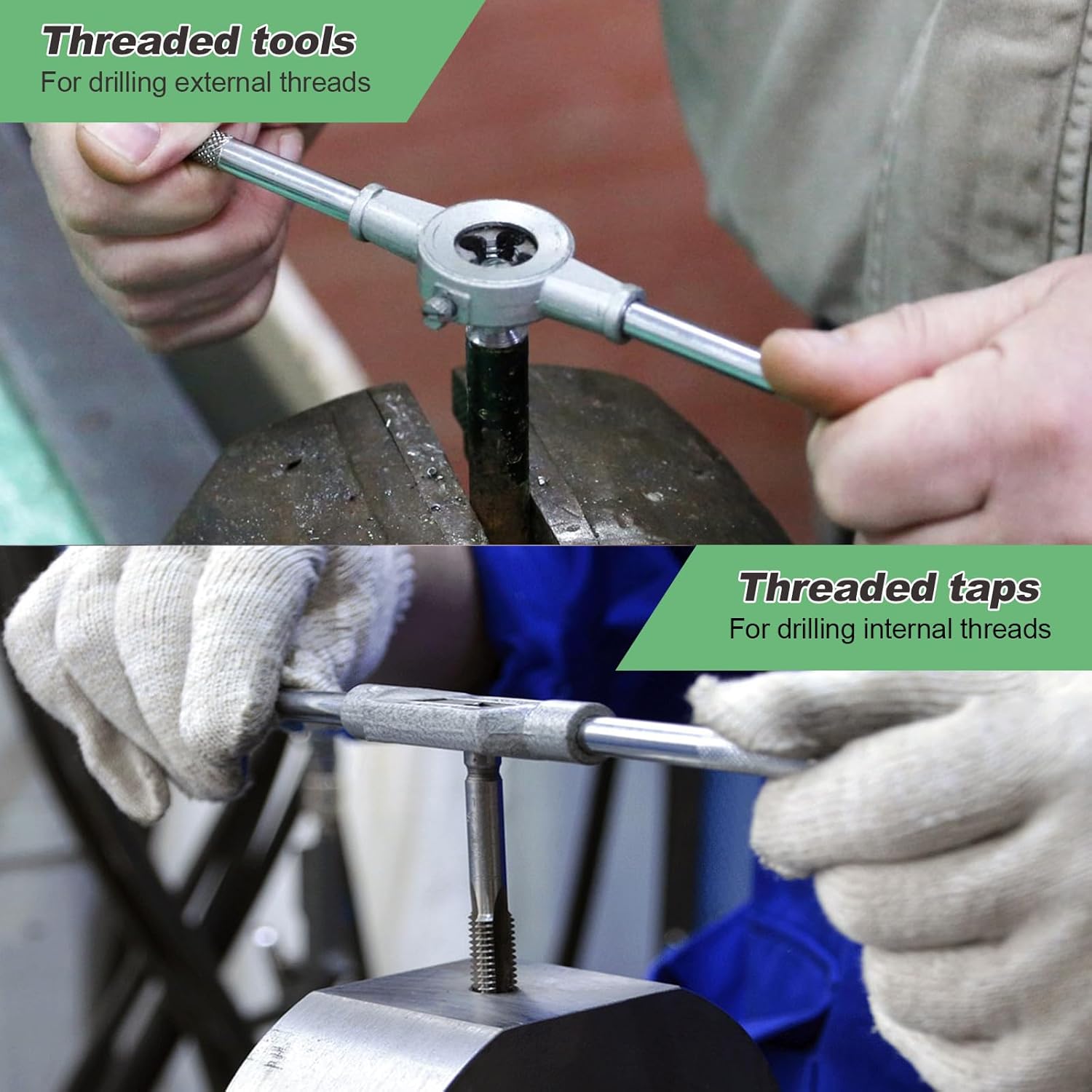 - đĄ ăWeiter Anwendungsbereichă: Unsere Gewindebohrer und Schneideisen können zum Bohren und Gewindeschneiden von Löchern in dĂŒnnem Edelstahl, Weichstahl, Eisen, Kupfer, Aluminium und Holzplatten verwendet werden. Es kann fĂŒr Werkzeugmaschinen,