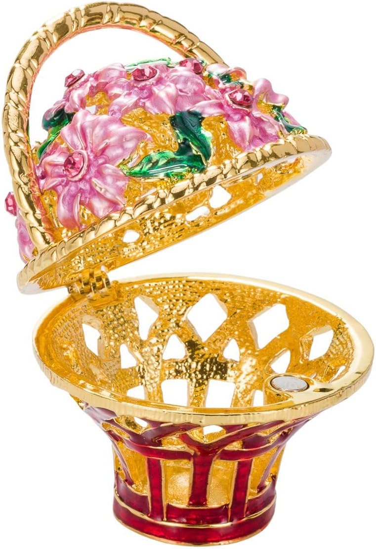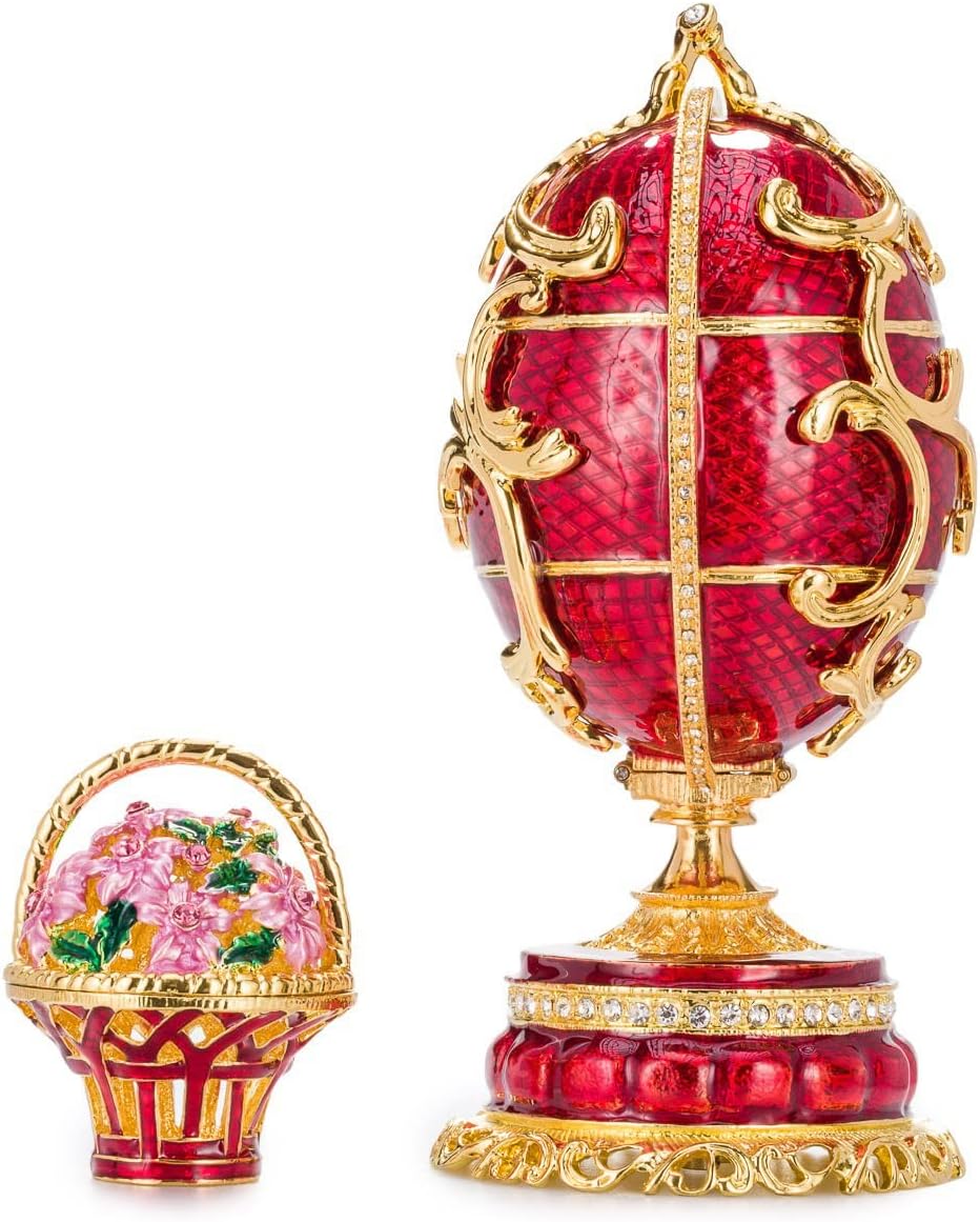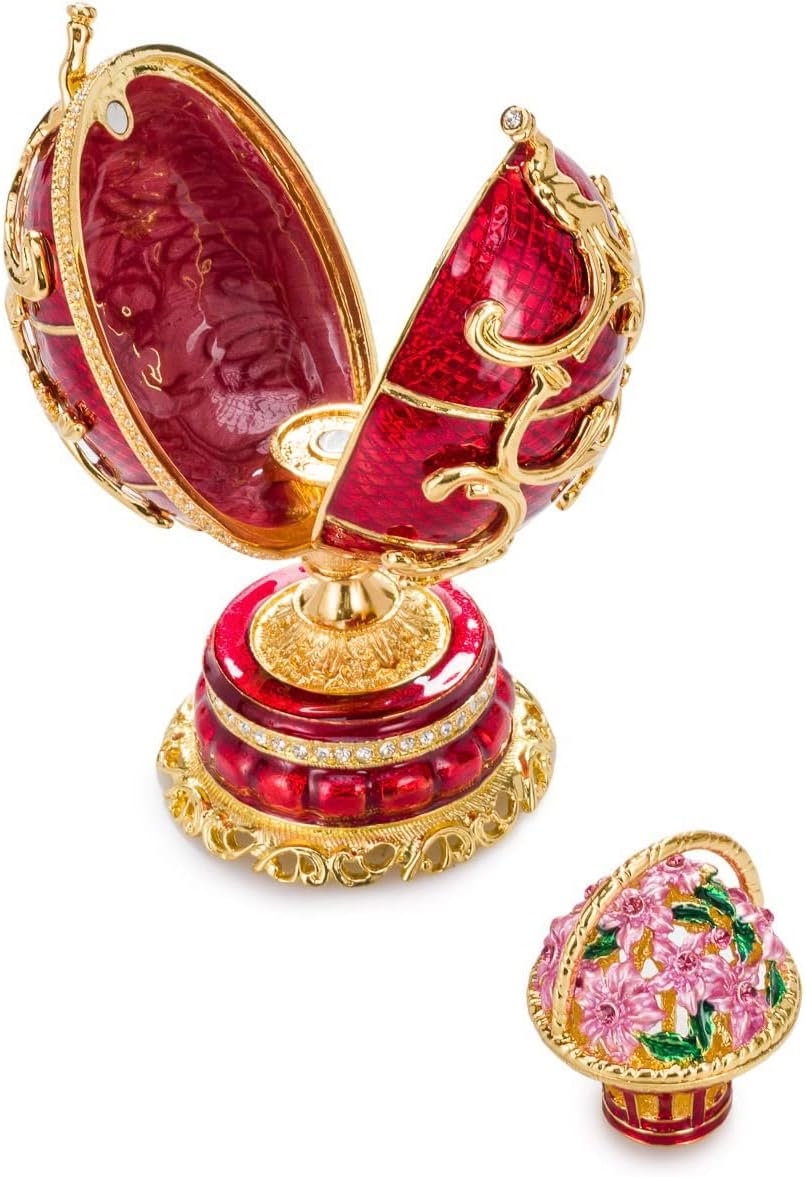 danila-souvenirs Fabergé-Stil Ei Spieluhr Schmuckkästchen Frühlingsblumen mit Korb der Blumen 16,5 c