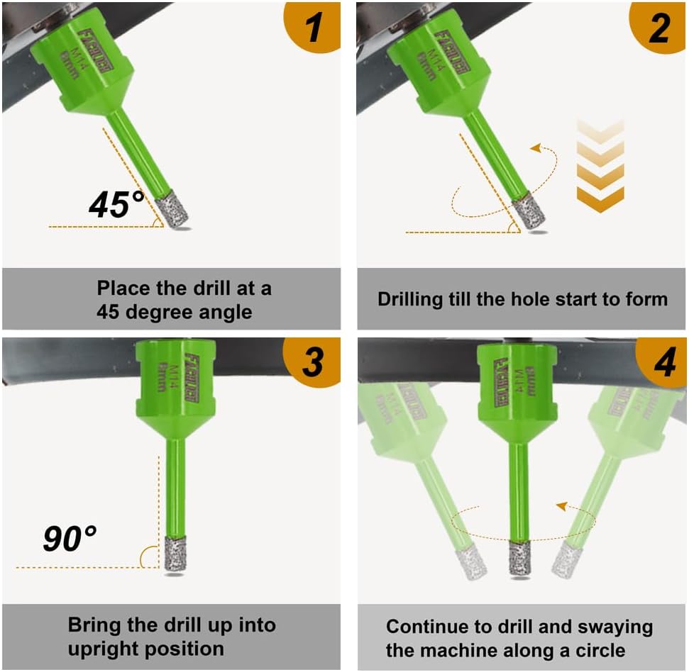 - Anwendung:Konzipiert für das Trockenbohren in Feinsteinzeug, Keramik, Natursteinfliesen, Marmor, Granit, Fliesen, Hartbodenfliesen und so weiter. Die Verwendung im nassen Zustand kann die Lebensdauer verlängern.