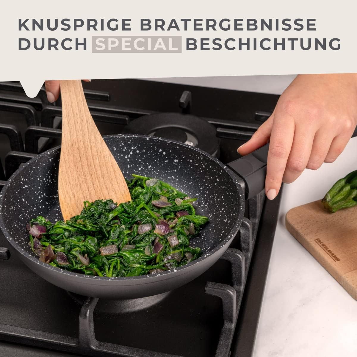 • PRAKTISCHES PFANNENSET – Von Fleisch bis Gemüse lassen sich sämtliche Köstlichkeiten in dem komfortablen Pfannenset zubereiten, dank Antihaft-Beschichtung brennen Speisen nicht an und durch die hervorragende Wärmeleitung sind beste Bratergebnisse