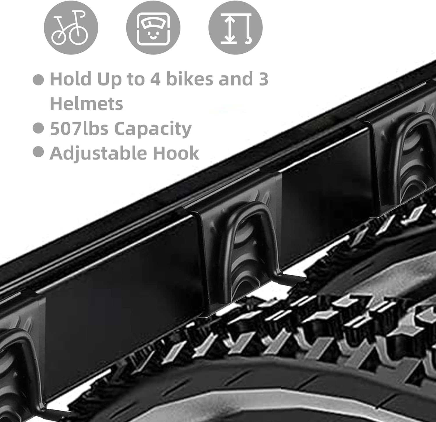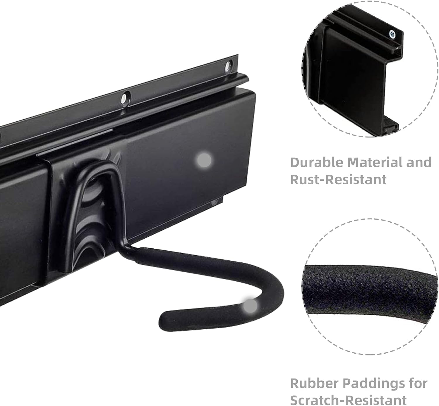 - 【Grosse Kapazität】 Die 32-Zoll-Verlängerungsschienenbefestigung kann an Ihren Garagenplatz angepasst werden. Die maximale Tragfähigkeit beträgt 230 kg / 507 lbs. Die maximale Tragfähigkeit jedes Fahrradhakens und Helmhakens beträgt 20 kg / 44