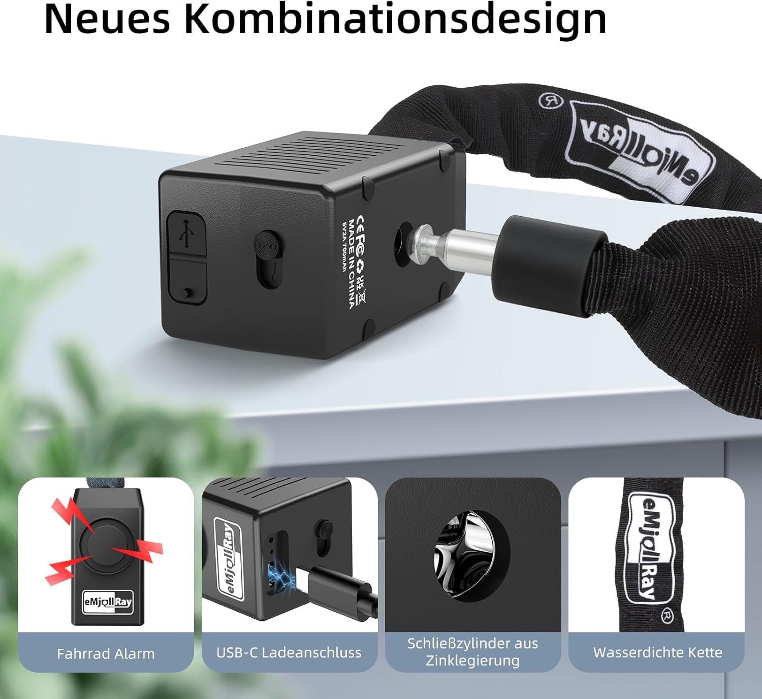 - 【200mAh Wiederaufladbare Fernbedienungen】: Das fahrradschloss ebike wird mit 2 x 200mAh wiederaufladbaren Fernbedienungen geliefert. Die Fernbedienung kann aus grosser Entfernung gesperrt werden und entsperren, bequem für Sie, den Alarm zu steuern.