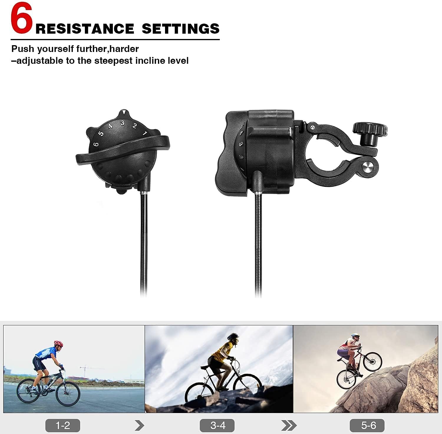 - 6 Widerstandseinstellungen: Trainieren Sie nach Ihren Vorstellungen mit der an der Stange befestigten Fernbedienung und der breiten Widerstandskurve, um alle Radfahrbedingungen zu simulieren. Mit dem Rollentrainer Ständer für den Indoor-Radsport