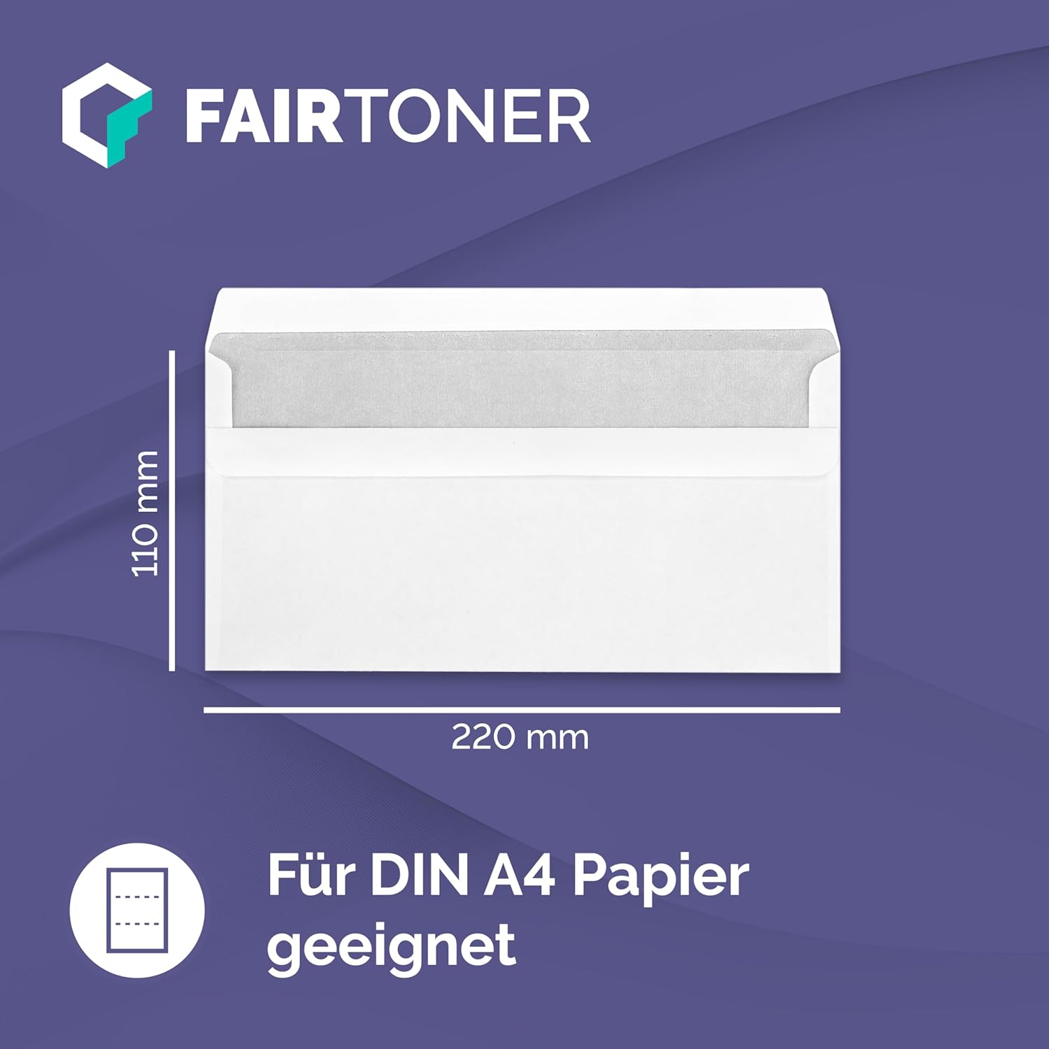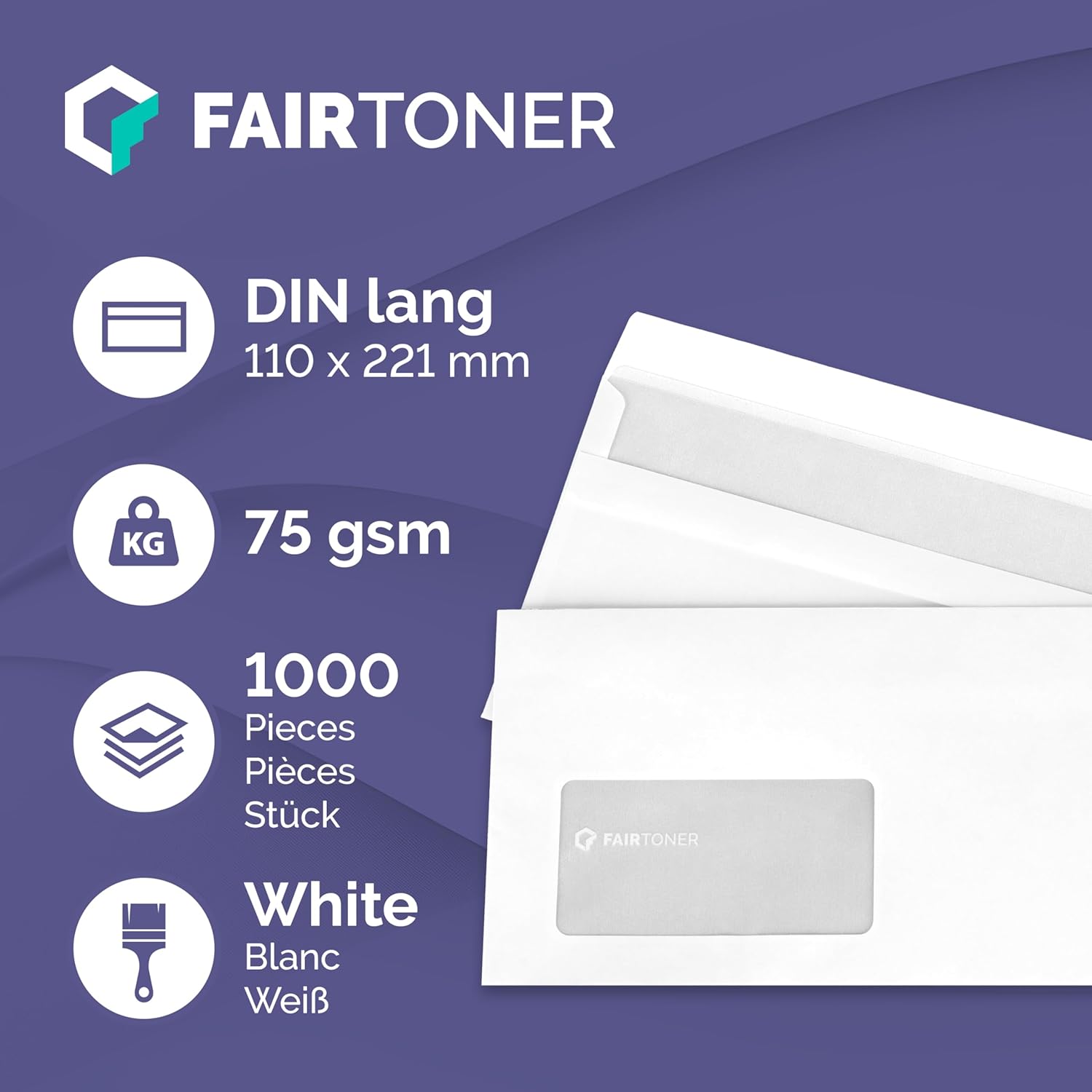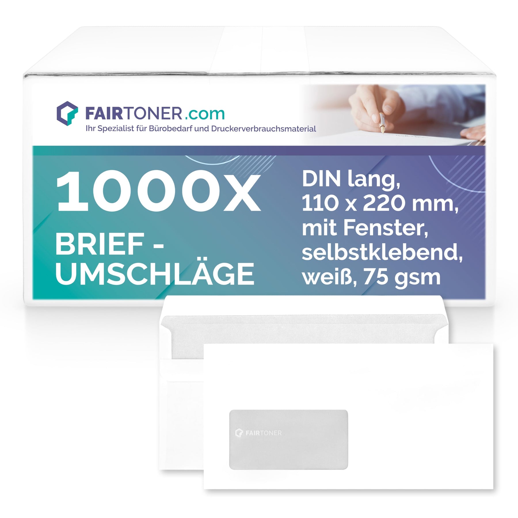 - Format: DIN Lang (110 x 220 mm) mit Sichtfenster und mit selbstklebender Doppelklappe.