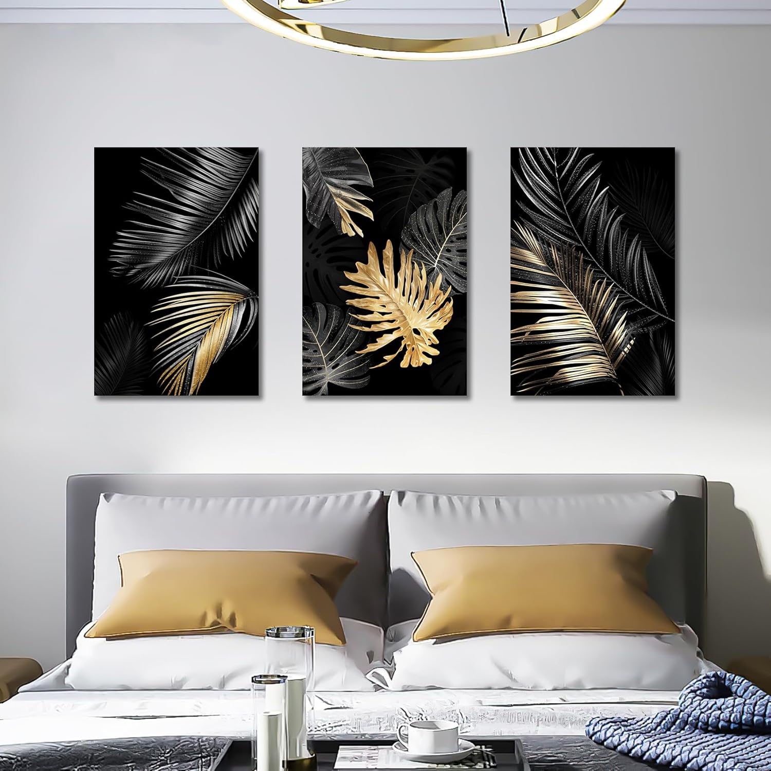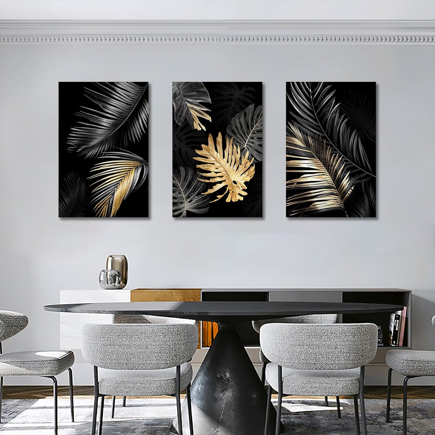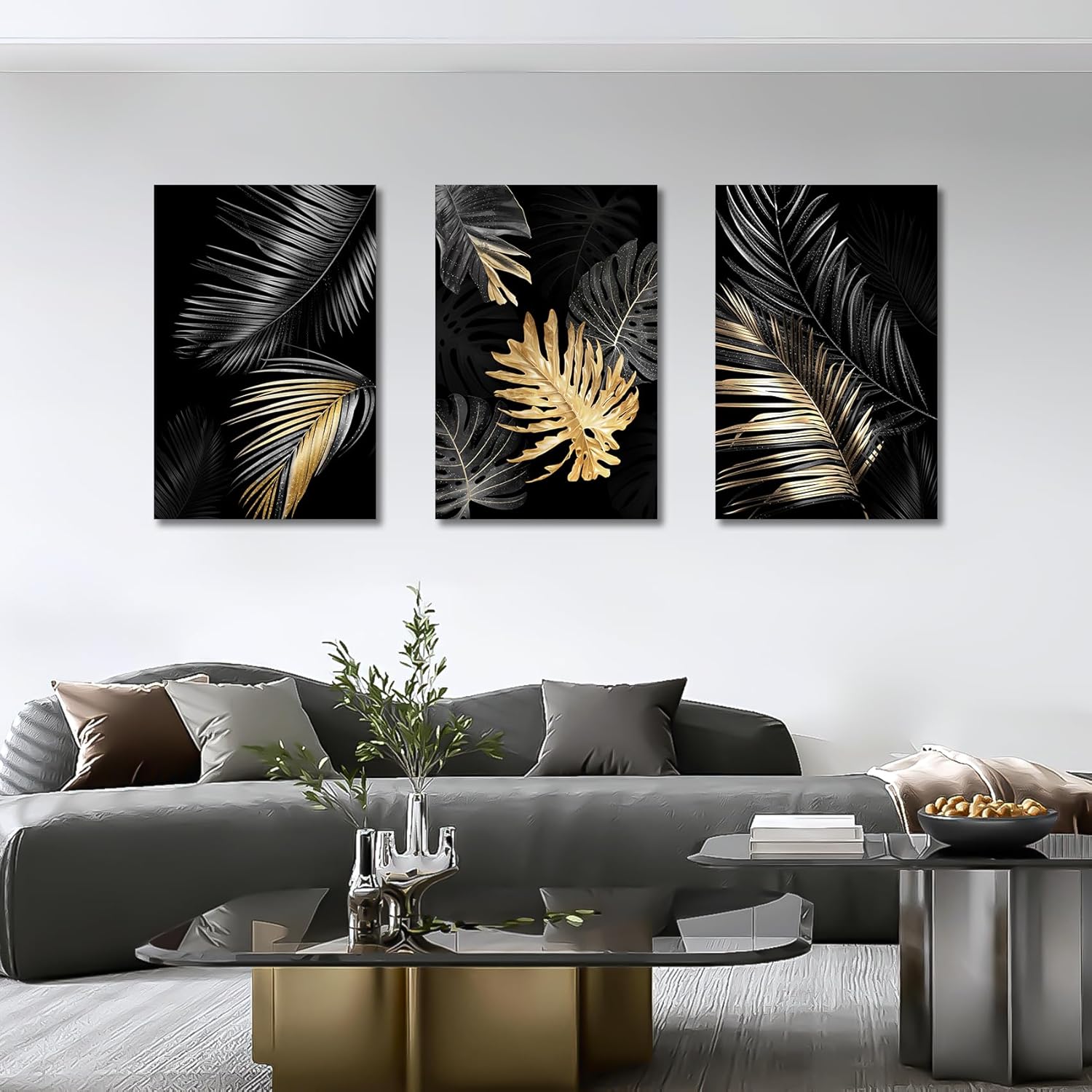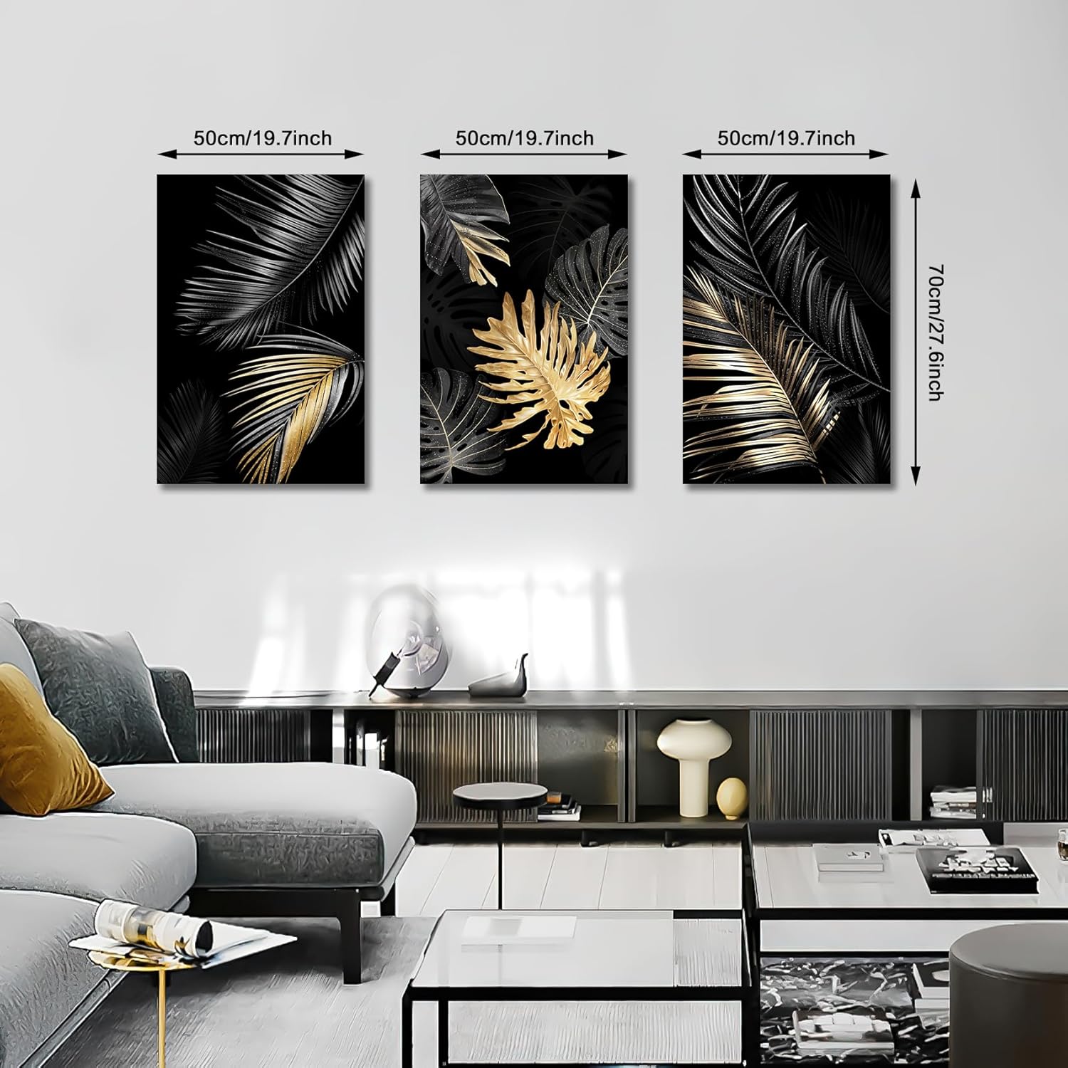 Variante: Abstrakt- Gold Schwarzes Blätter 01 50x70 cm (3 tlg.)