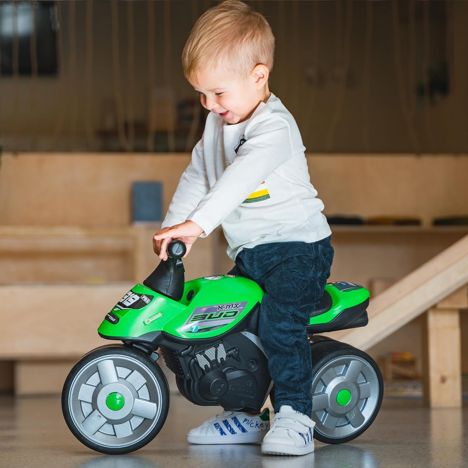 • Leise und sichere Räder: Im Haus und auf der Strasse fahren unsere Flitzer dank ihrer breiten Räder mit Elastomer-Lauffläche ohne Lärm. Sie sind auch sicher, damit Ihre Kleinen ihre Balance und Motorik ohne Befriedigung entwickeln können und ihnen