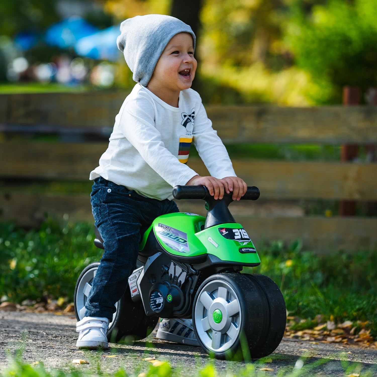 • Ein Racing-Look für die Augen und die nicht kalt sind: am Lenker des 2-Rad-Flitzers wird sicherlich sein, dass Ihr Kind seinen Einzug im Park spüren wird. Mechaniker-Enthusiasten werden die vielen Details an die Rennwelt erfreuen.