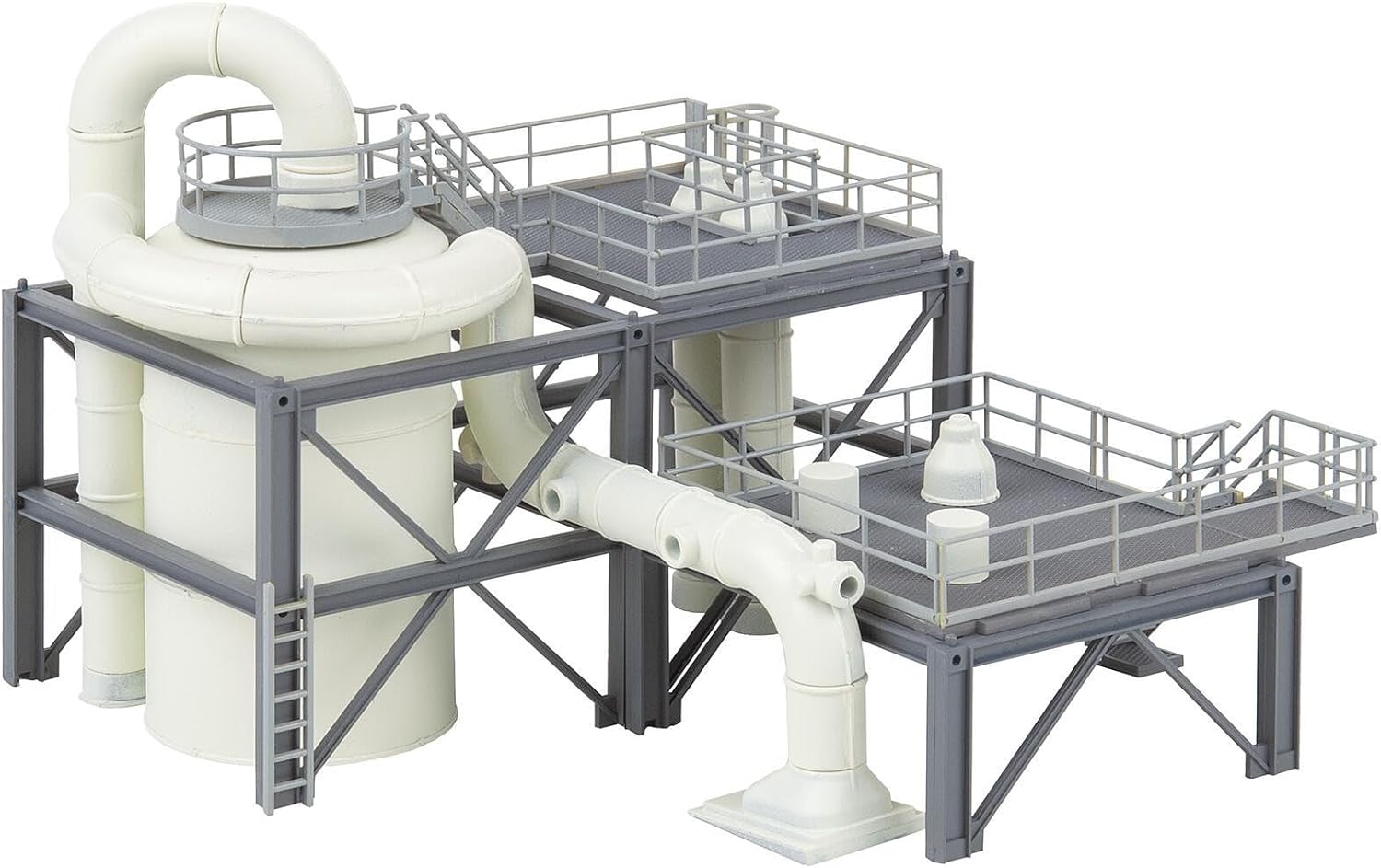 - Freistehendes, mehrgeschossiges Apparategerüst mit zwei Plattformen, einem Reaktor, Rohrleitungen und typischen Ausrüstungen. Passend zum Modell »Chemieanlage«, Art. 130175.