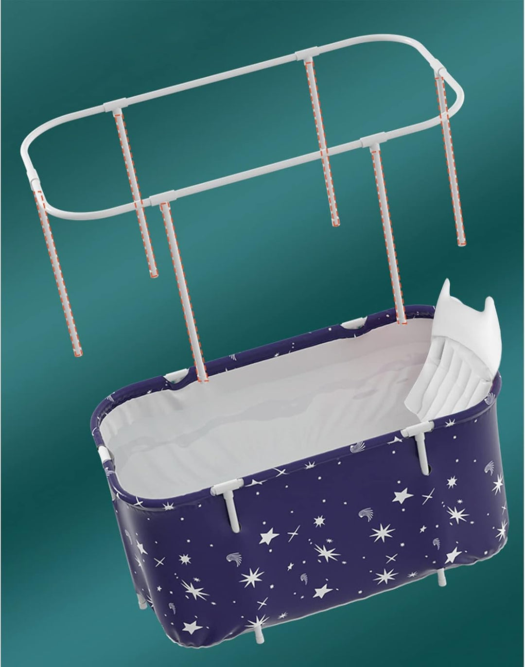 • 【Einfache Aufbewahrung und Verwendung】:Sinbide klappbare Badewanne hat Aluminiumstreben, It does not need inflatable, and it is easy to install. Sie können diese tragbare Badewanne in 3 Minuten einfach zusammenbauen und in 3 einfachen Schritten