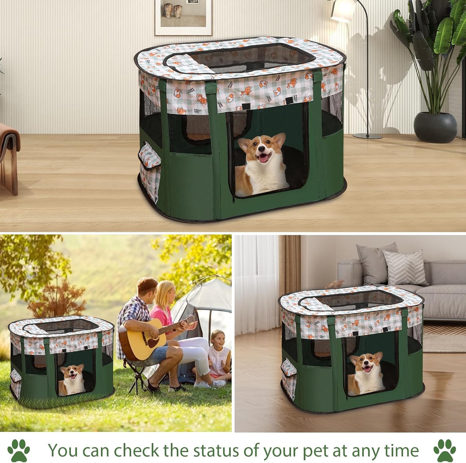 - 【Haustierfreundliches Design】 Der Hundezaun hat ein Zeltschalen-Design, das nicht nur die Sicherheit erhöht, sondern auch einen geschlossenen Raum für kleine Haustiere zum Spielen oder Ausruhen bietet; Die leichte Netztür und das Oberlicht sorgen