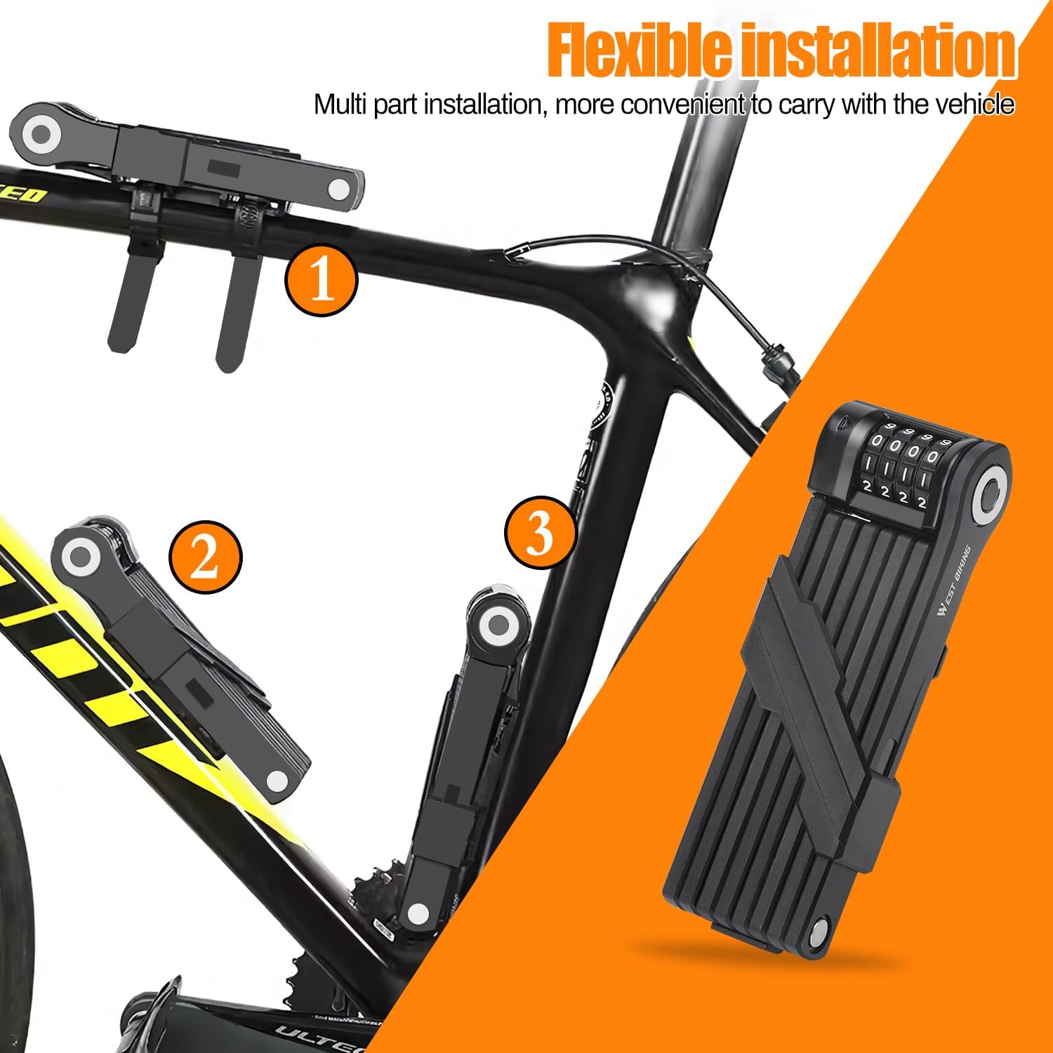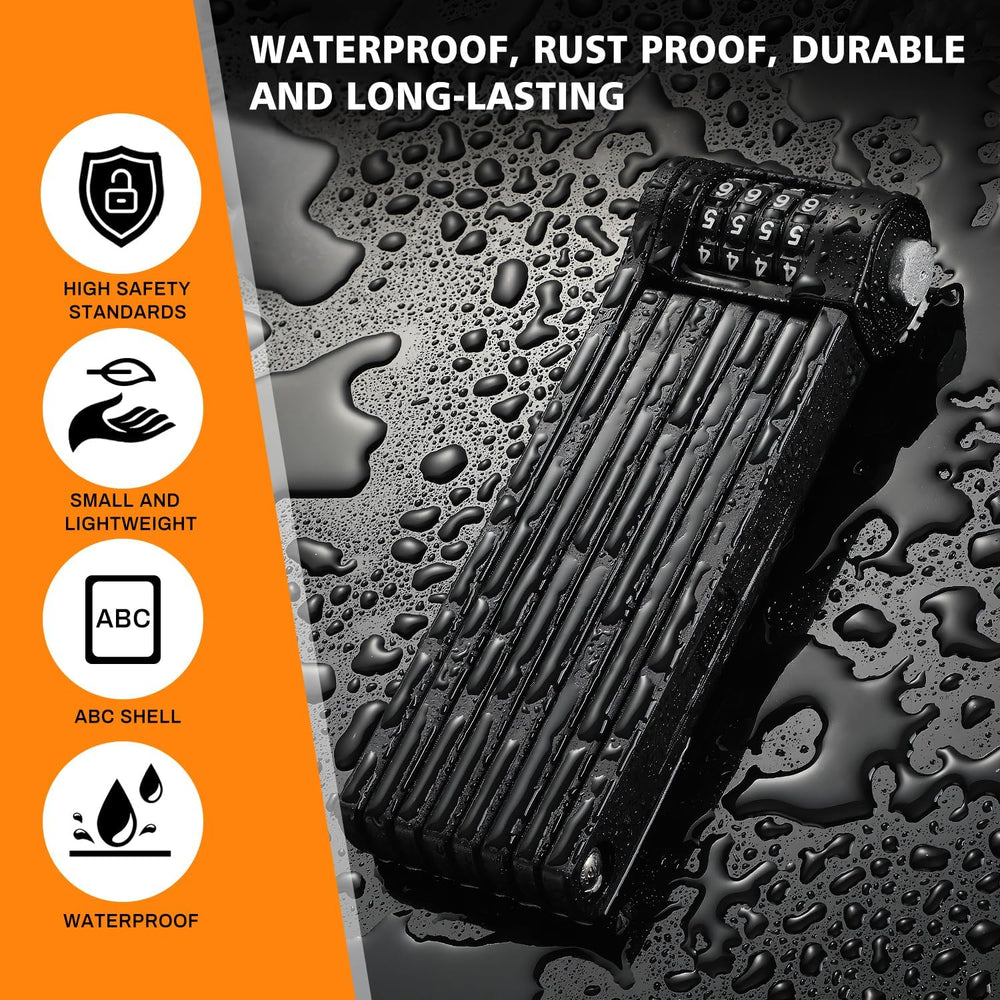 - ✅【Sicher und Stabil】Das Fahrrad-Faltschloss besteht aus hochwertigem legiertem Stahl, mit acht Faltschnitten, einem verlängerten Schlosskörper, einem verdickten Schlosskörper, hochfest, wasserdicht und rostfest. Die spezielle Stahlkonstruktion