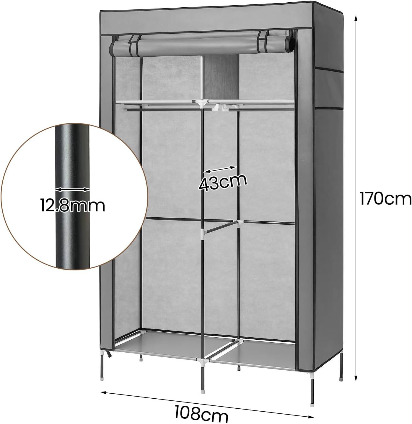 - Grosser Stauraum für Kleidung: Dieser Stoffkleiderschrank bietet mit 108x45x170 cm viel Platz für Kleidung, Schuhe, Taschen und Accessoires. Die integrierte Kleiderstange ermöglicht ein ordentliches Aufhängen von Hemden, Jacken und Kleidern, während