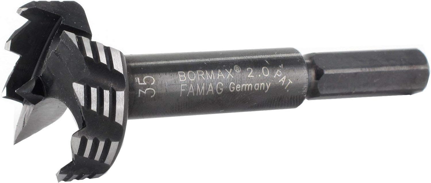 - Der lange Bormax-Forstnerbohrer aus legiertem Werkzeugstahl in Premiumqualität
