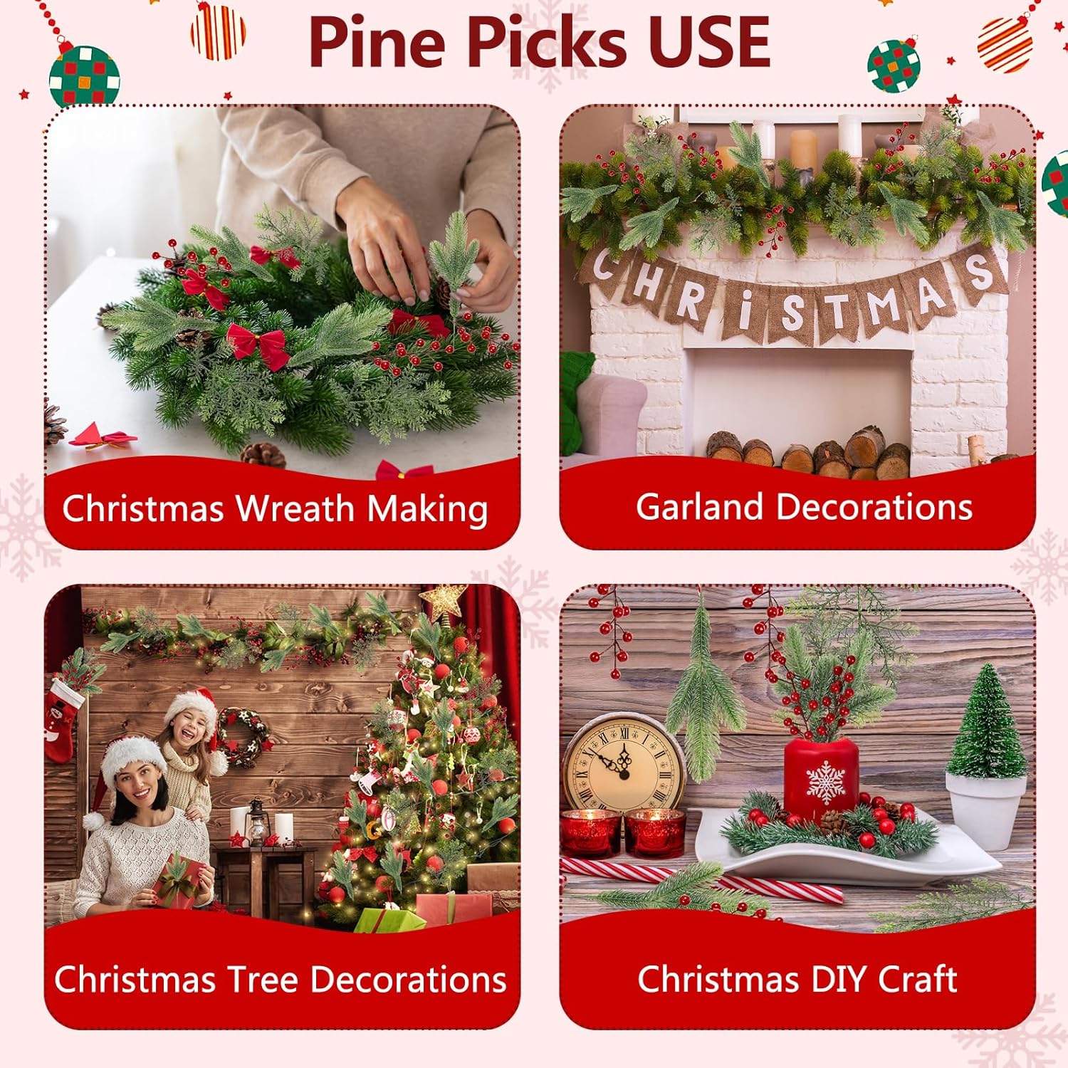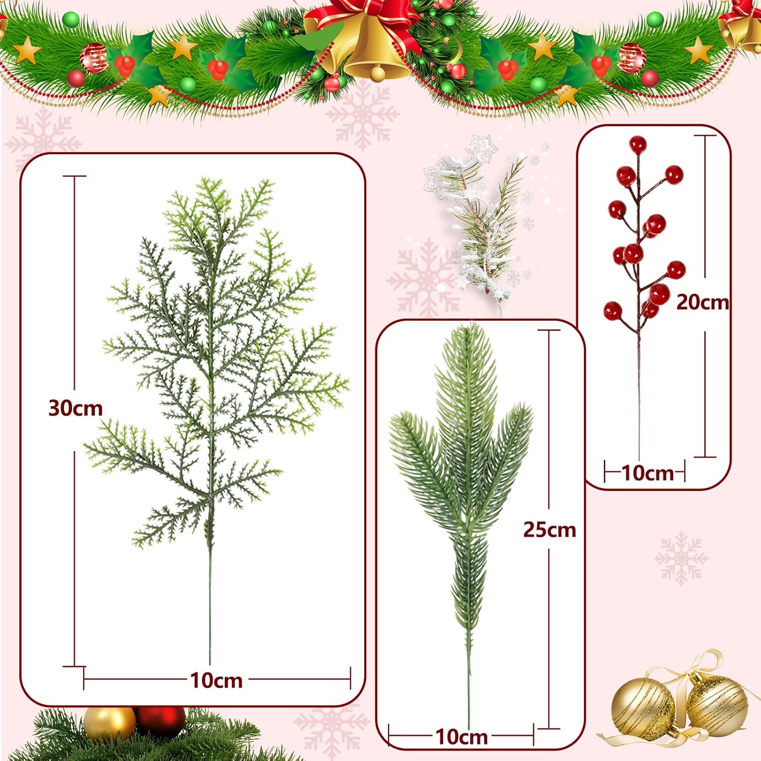 - Weihnachten Künstliche Tannenzweige: 36PCS künstliche zweige weihnachten enthalten pro Paket in drei verschiedenen Arten. Paket einschliesslich 12pcs künstliche zweige rote beeren auf länge von 20cm, 12pcs Weihnachts kiefernadeln auf Länge von 25cm