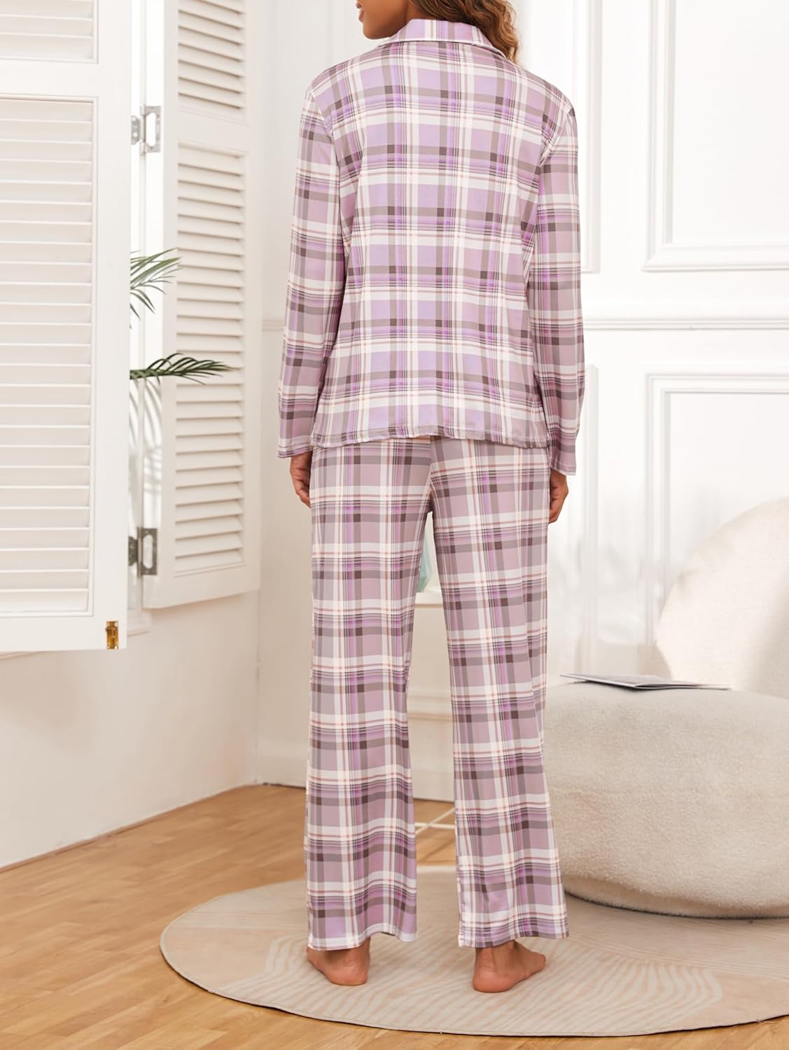 - 🌺 Material: Weiches und gemütliches Langarmpyjama-Set besteht aus leichtem, weichem atmungsaktivem und hautfreundlichem Stoff. Klassisches bedrucktes kariertes Oberteil und Pyjamahosen mit weitem Bein sorgen für einen gesunden Schlaf.