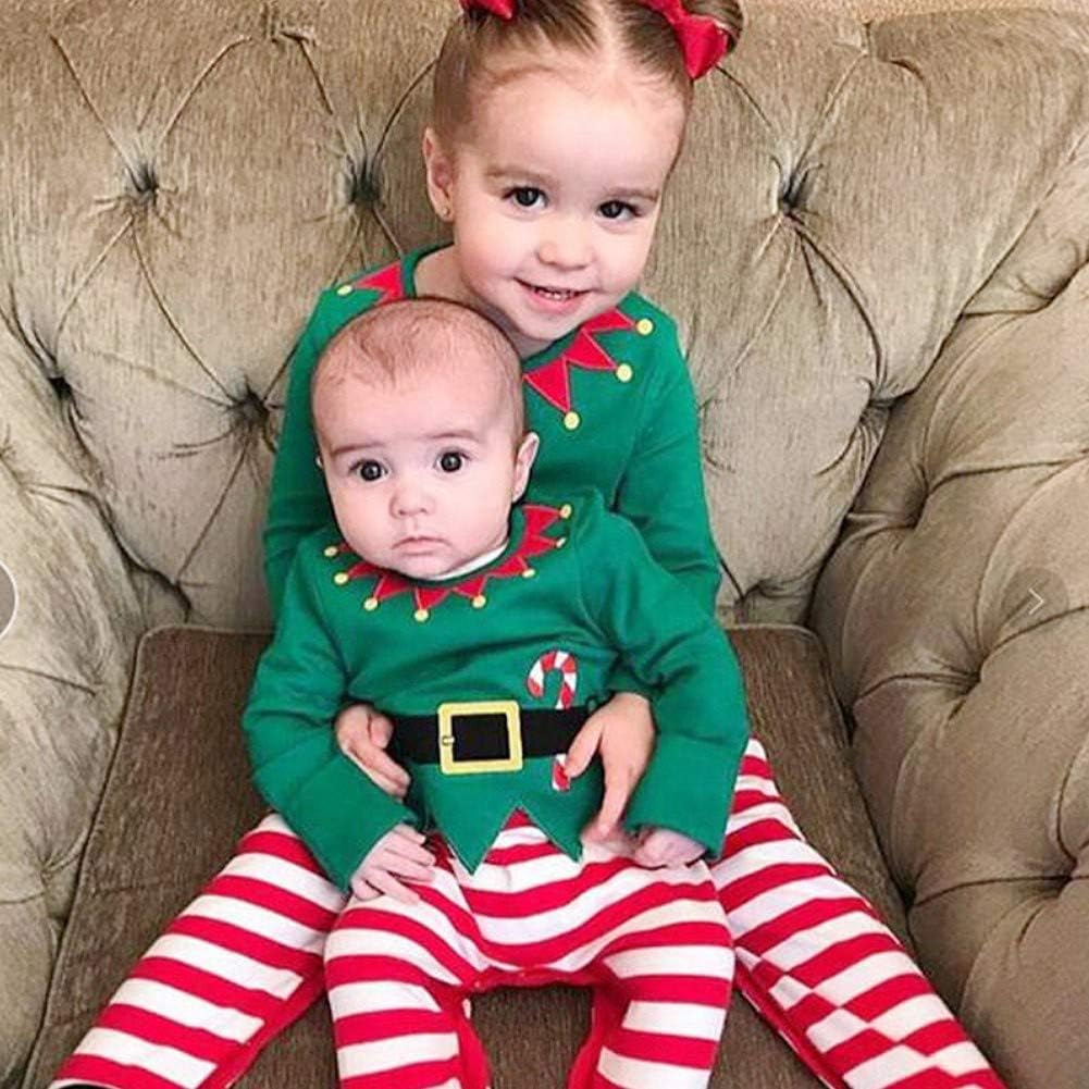 - Paket enthalten: 3 Stück Weihnachtskleidung Set enthalten 1 Stück Santa Claus Elf Kostüme Langarm Tops, 1 Stück gestreifte Hose und 1 Stück Hut