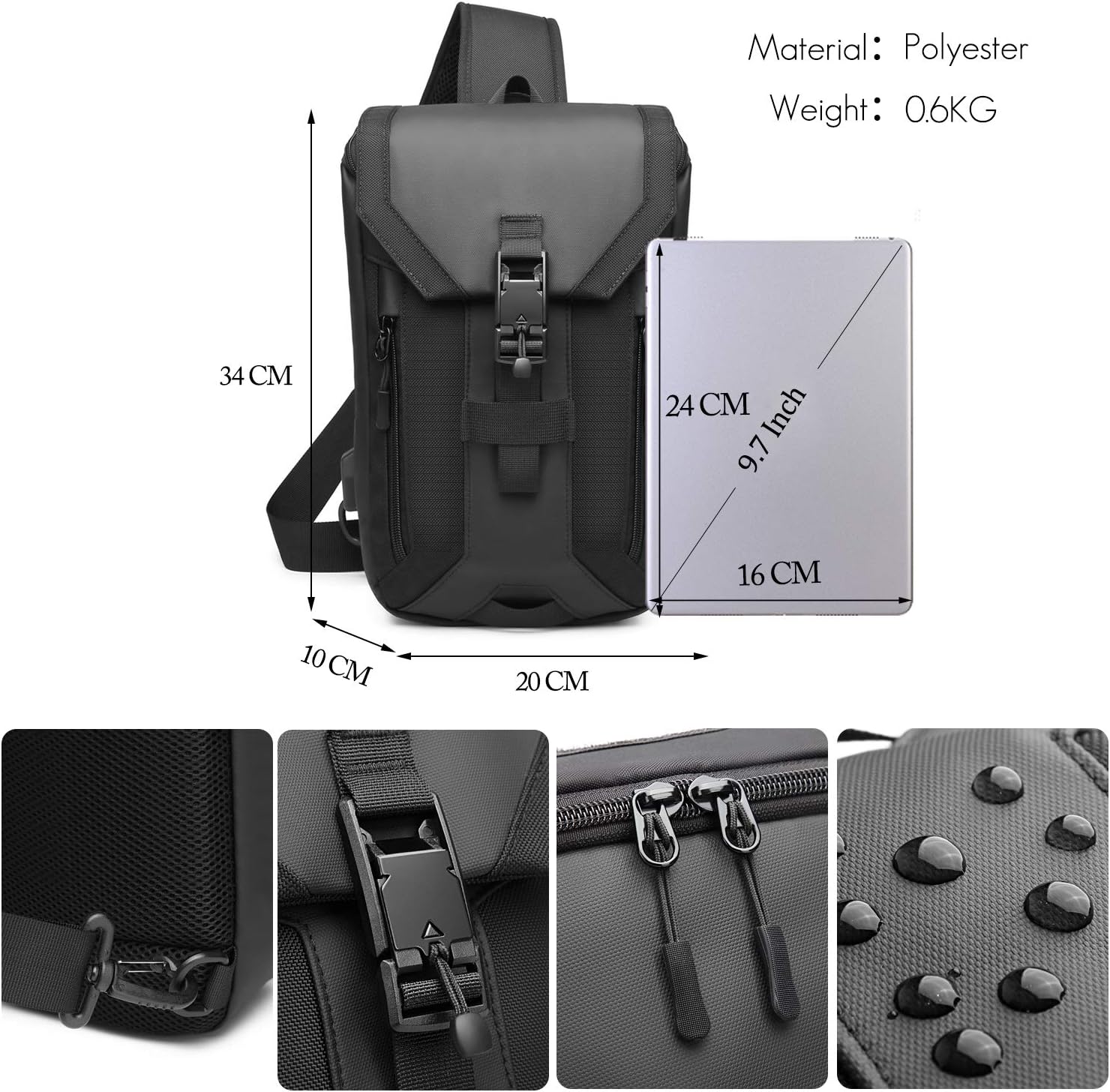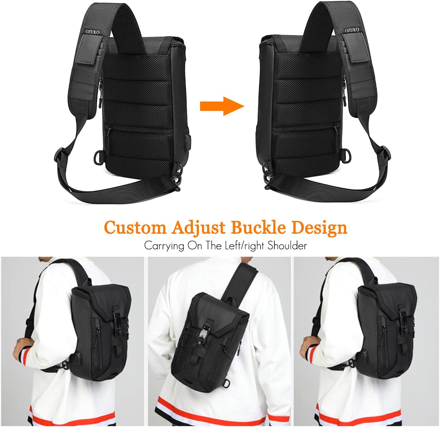 FANDARE Anti-theft Brusttasche Sling Bag mit USB Schultertasche Herren Grosse Kapazität Crossover Ba