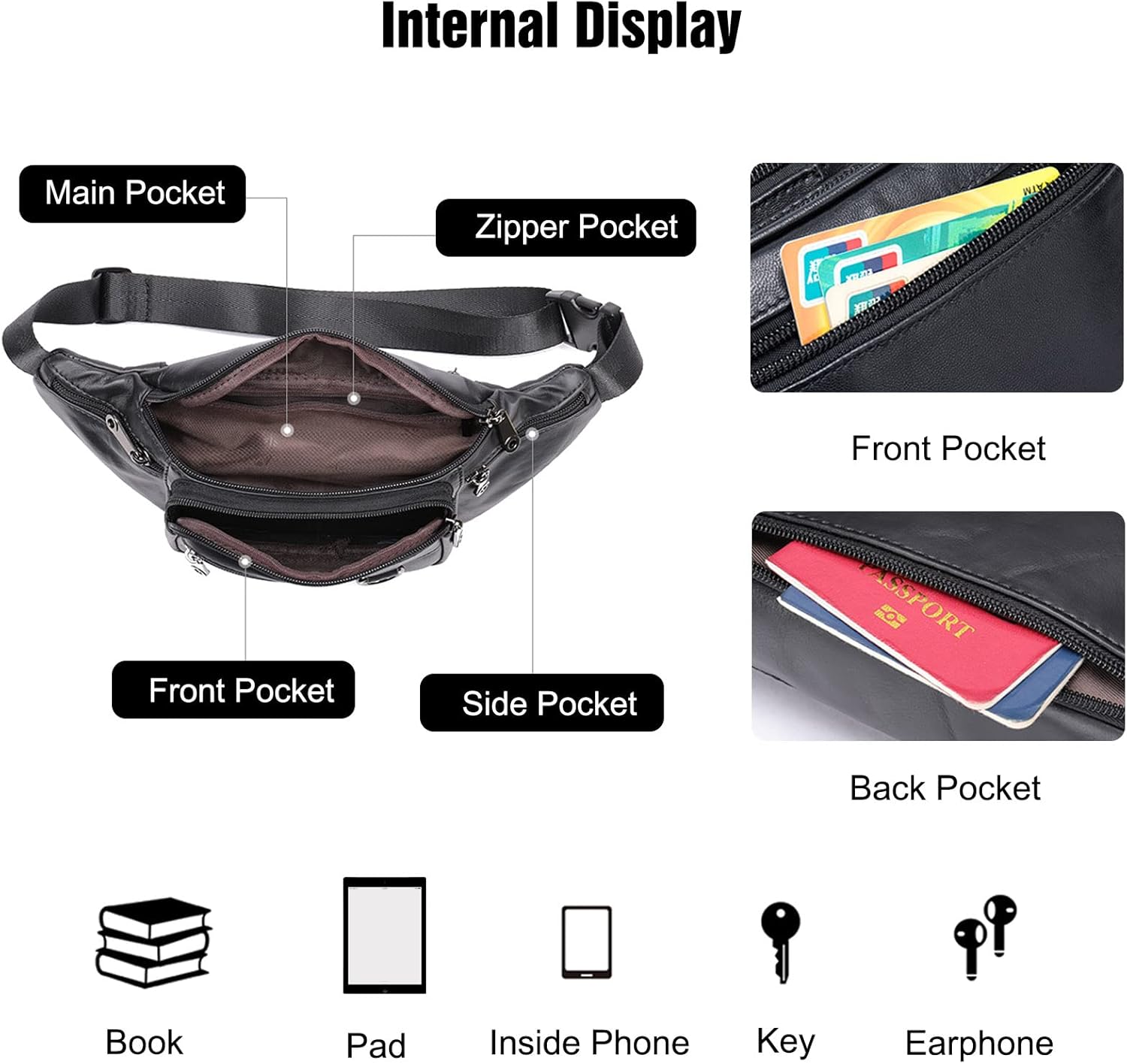 - ✔ Für Ihren besten Komfort. Diese Taillentasche für Frauen Männer kann mit einem Taillenbereich von 58 cm bis 75 cm weit eingestellt werden. Durch die Schnellverschlussschnalle können Sie diese Gürteltasche vor Ihrer Taille, auf dem Rücken an der