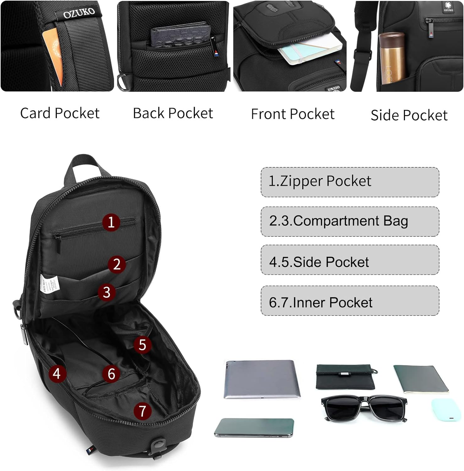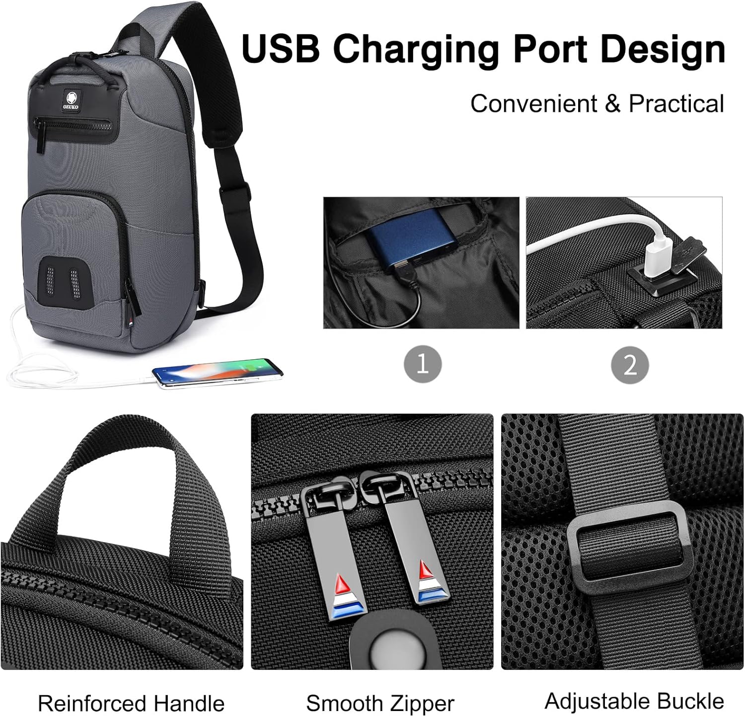 - Ultraleichter Sling-Rucksack - Mit dem Design des USB-Ladeanschlusses machen Sie Ihre gesamte Kollokation schicker und halten mit dem Trend Schritt. Unsere Umhängetasche ist ein grossartiger Begleiter für Outdoor-/Indoor-Aktivitäten und perfekt für
