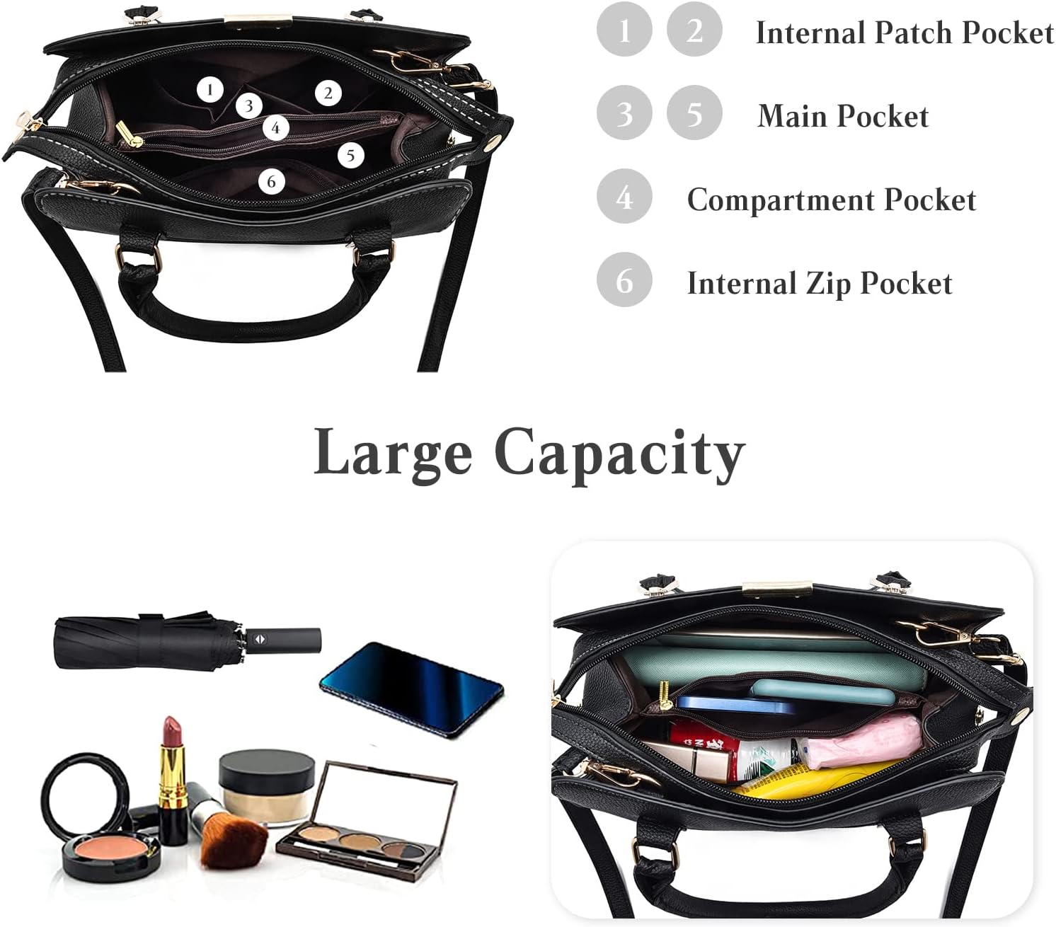 - đăMehrere Taschenă Diese Damen-UmhĂ€ngetasche hat 1 Haupttasche mit Reissverschluss (2 offene Innentaschen + 2 Haupttaschen + 1 Innentasche mit Reissverschluss + 1 Reissverschlusstasche) + 1 Reissverschlusstasche auf der RĂŒckseite. Diese