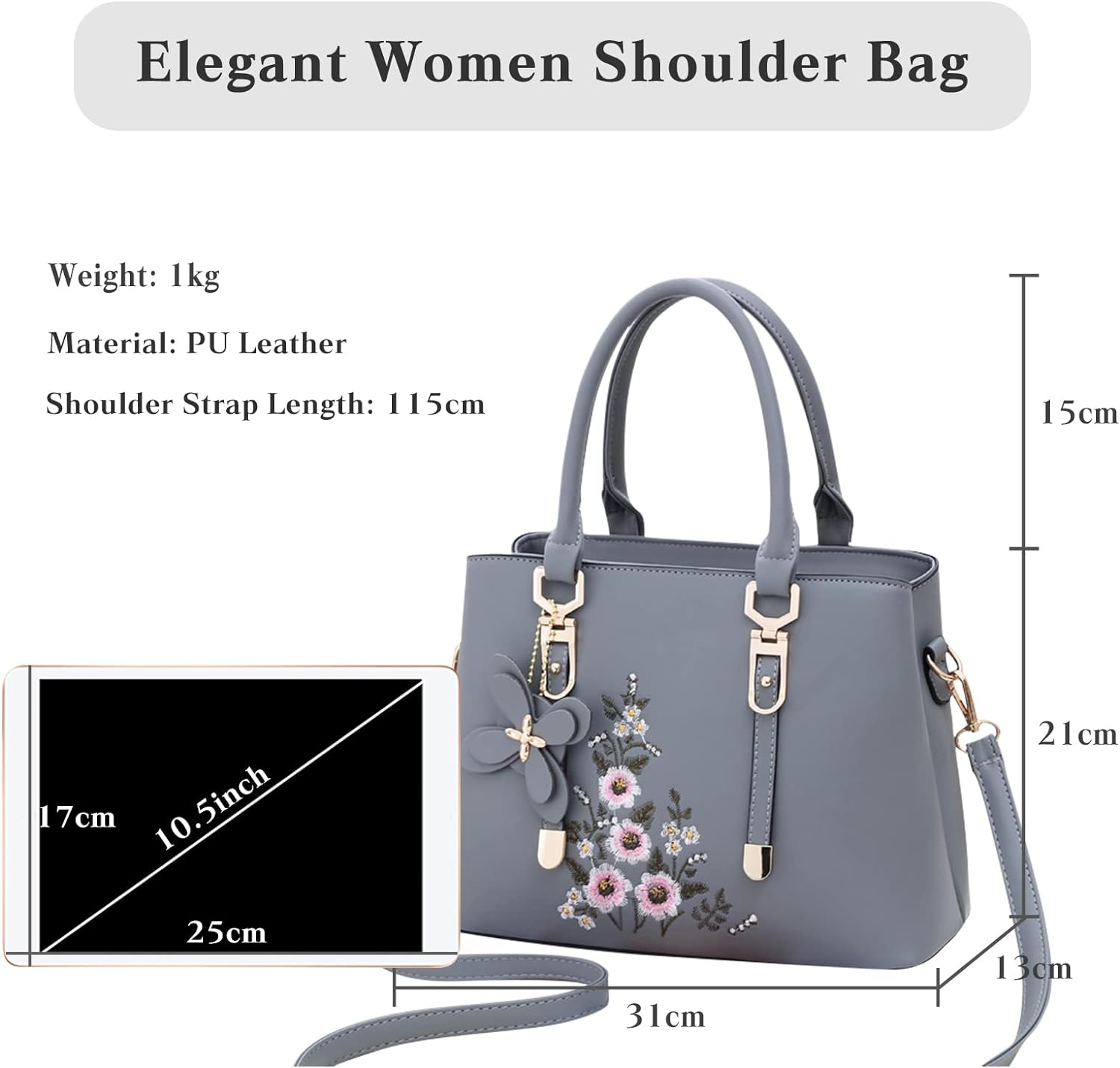 FANDARE Damen Henkeltaschen Wasserdicht Tote Beutel UmhÀngetaschen Schultertasche PU-Leder Bestickte