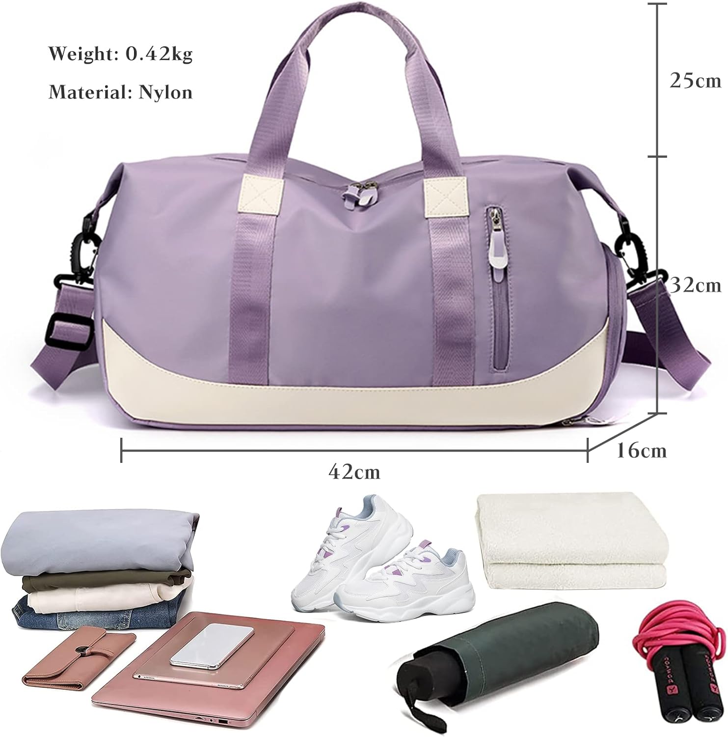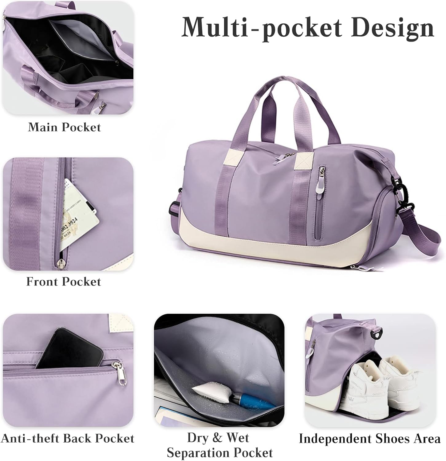 • 💕【Grosse KapazitĂ€t】Die Sport-Sporttasche verfĂŒgt ĂŒber 1 gerĂ€umige Haupttasche + 2 offene Innentaschen + 1 separate Nass-Trocken-Tasche + 1 Vordertasche + 1 hintere Anti-Diebstahl-Reissverschlusstasche + 1 Schuhbeutel. Die separate