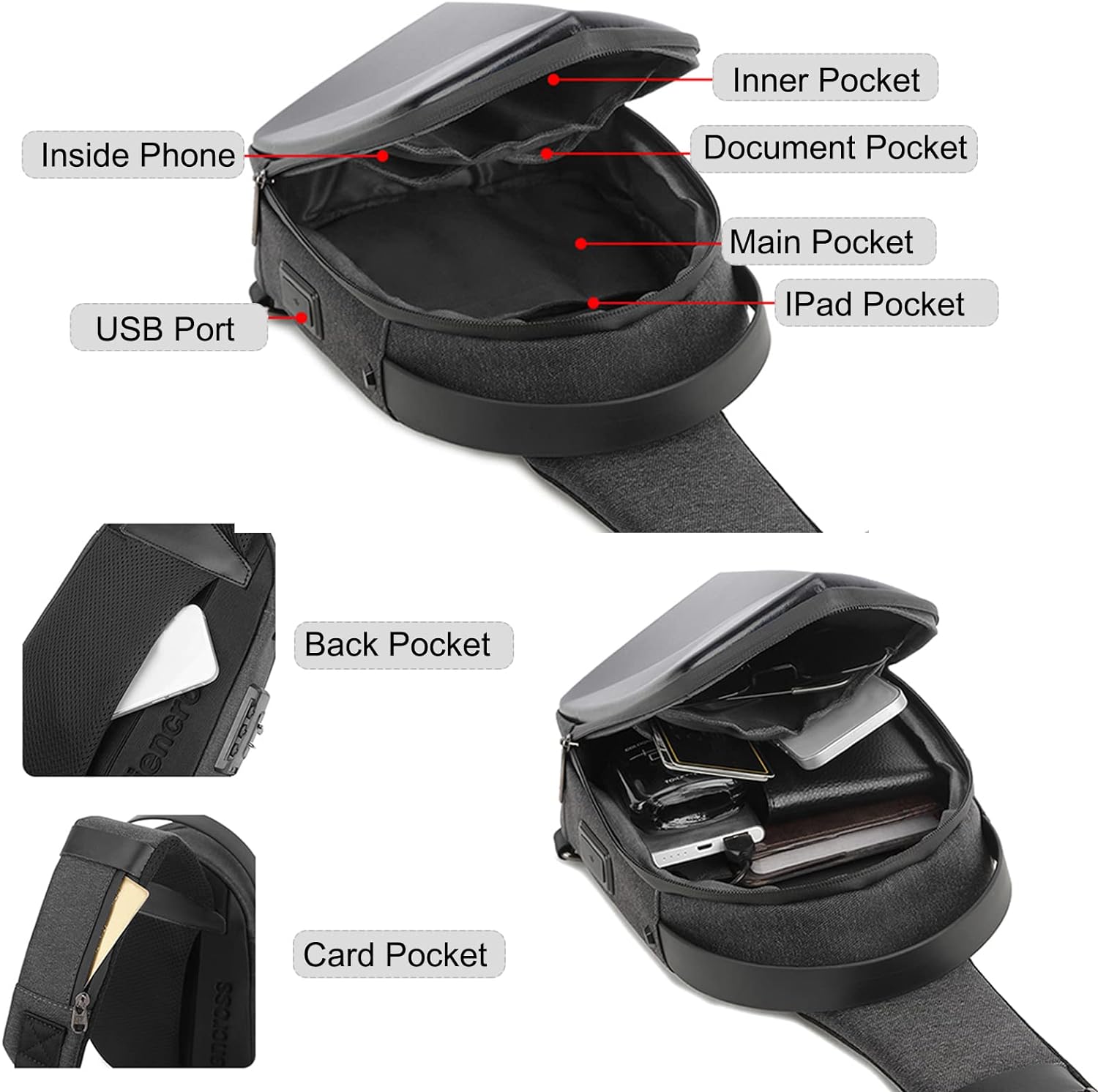 - Ultraleichter Crossbody-Rucksack - Mit USB-Ladeanschluss und Passwortsperre machen Sie Ihre gesamte Kollokation schicker und halten mit dem Trend Schritt. Unsere Umhängetasche ist ein grossartiger Begleiter für Outdoor-/Indoor-Aktivitäten und perfekt