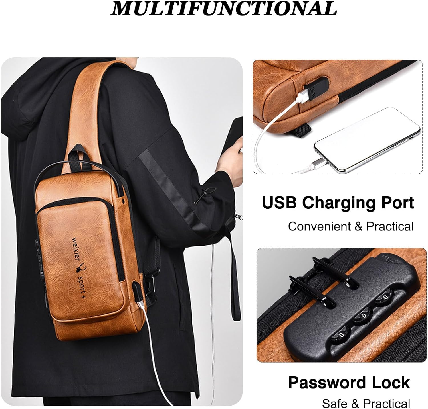 - Anti-Diebstahl-Crossbody-Rucksack – Durch die Übernahme des italienischen Linienstruktur-Designkonzepts und des einfachen Designgedankens des Autos ist er schnell und ohne Last. Das Design des USB-Ladeanschlusses und der Passwortsperre macht die