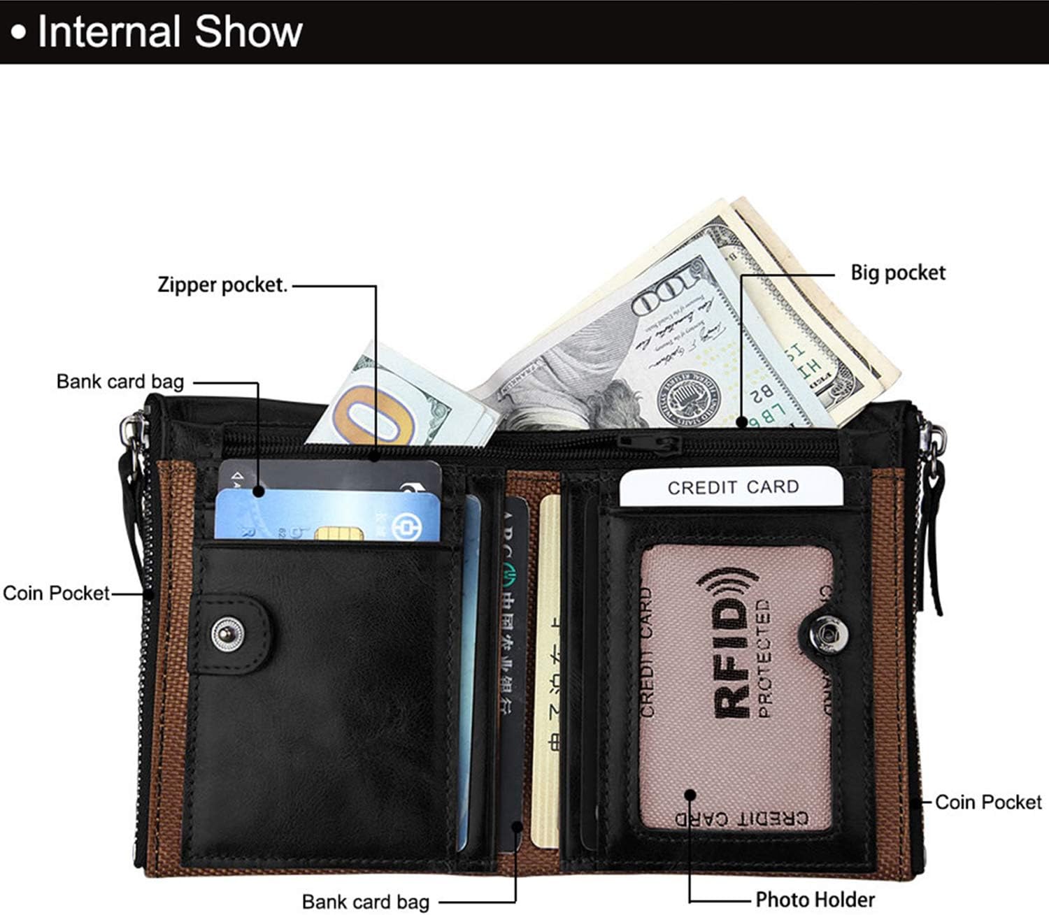 • Multi-Pocket: 1 * Hauptfach für Bargeld, 1 * Reissverschluss, 6 * Kartenfächer, 2 * Münzfach, 1 * Fotohalter, 1 * externes Kartenfach. Simple & Retro Style, klein und kompakt, jederzeit und überall leicht zu erreichen. Exquisite Schichtung macht Ihre