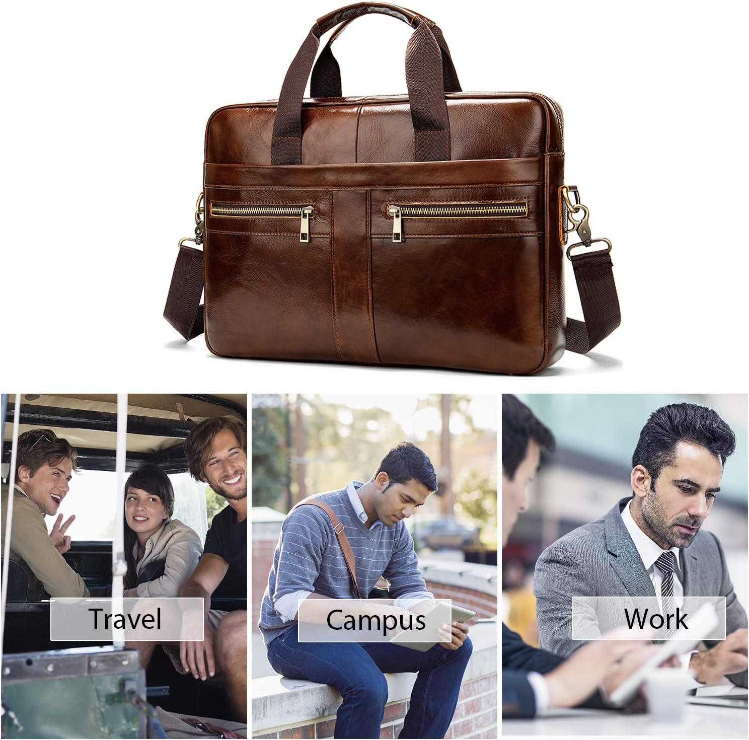 • Eine Vielzahl von Trägermethoden: Es ist sehr flexibel. Sie können es als Aktentasche, Umhängetasche, Handtasche, Messenger Tasches verwenden. Es kann auch auf der Vorder- oder Rückseite des Körpers platziert werden. Gentleman-Stil, Business und