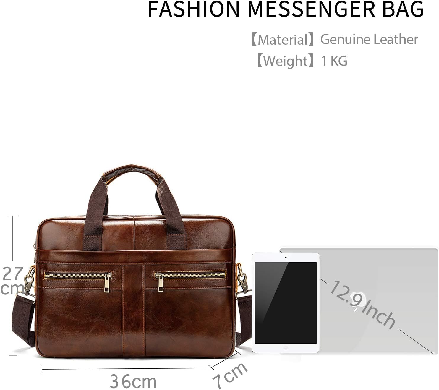 • Grosse Kapazität: Diese Lederhandtasche verfügt über viele Aufbewahrungstaschen. Mit einem gepolsterten Computerfach bietet es Platz für einen 12,9-Zoll-Laptop. Die vordere und hintere Reissverschlusstasche kann Brieftaschen, Schlüssel, Handy usw.
