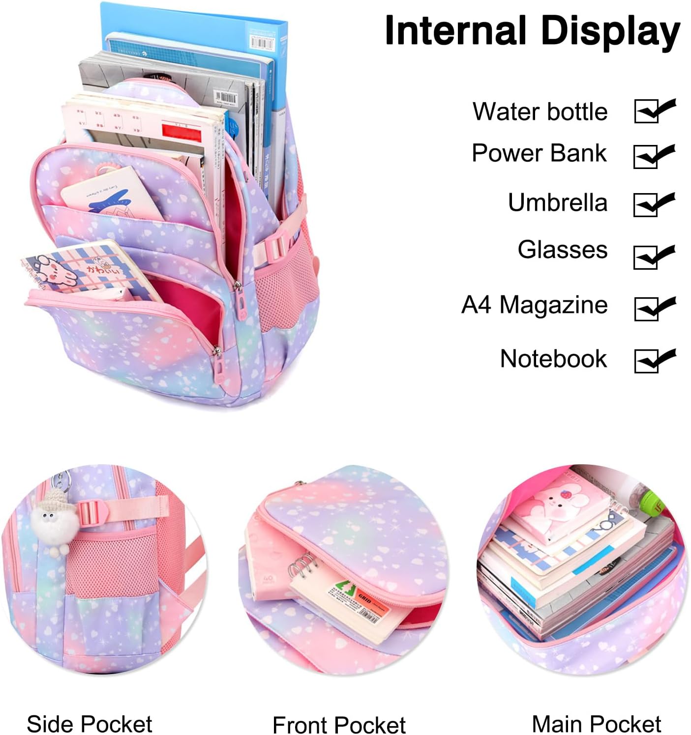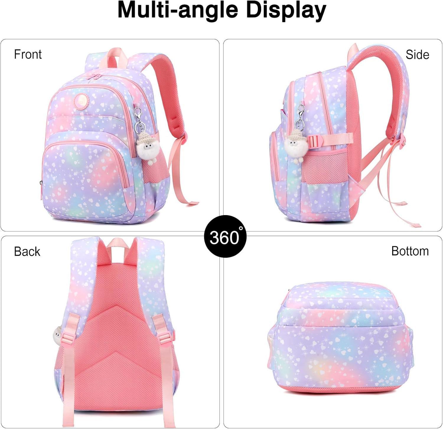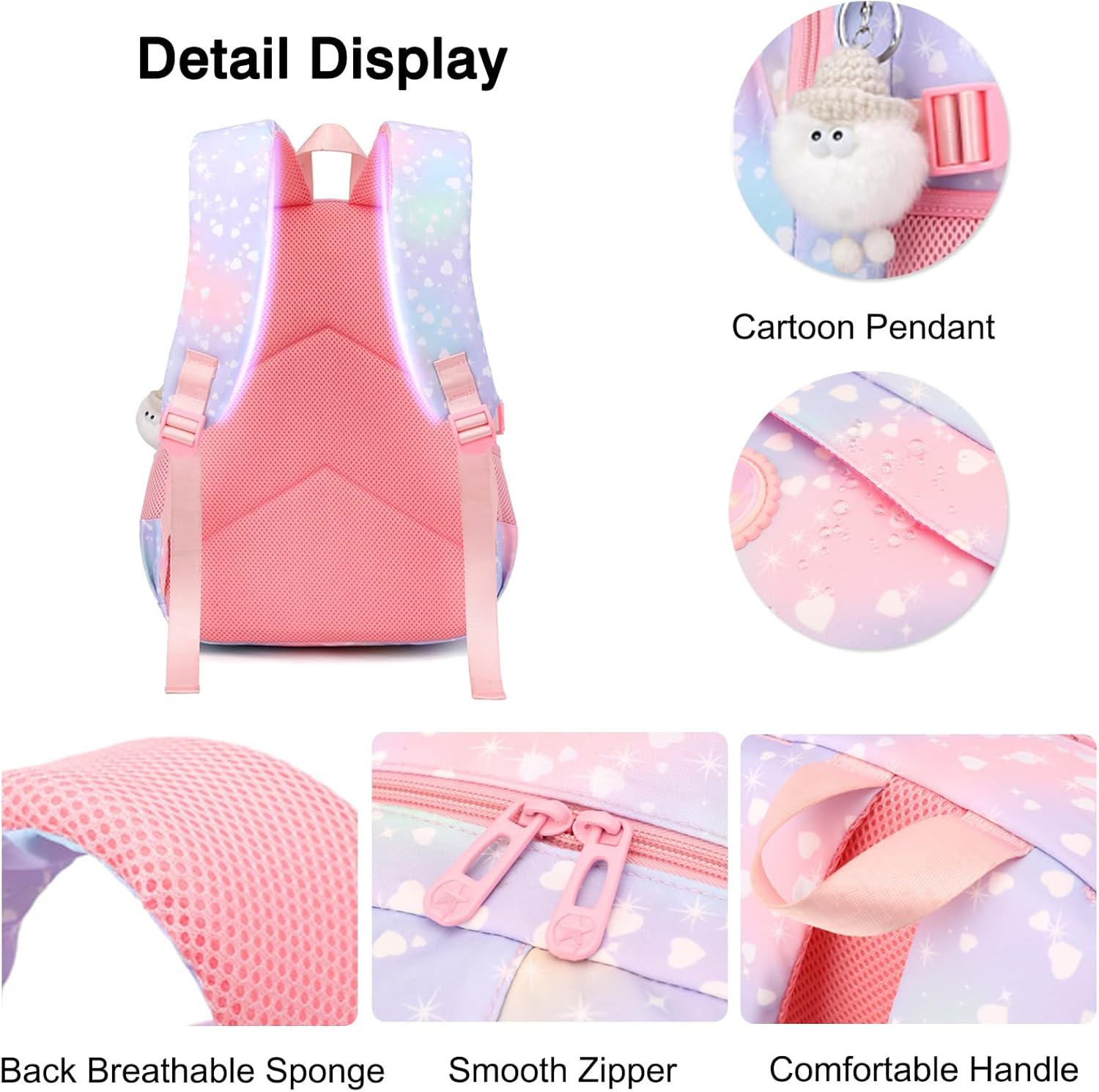 - Tragbar und Dekompression - Leicht und bequem, die Kinderbüchertasche verfügt über verstellbare, gepolsterte Schultergurte, einen wabengepolsterten Kissenschutz zum Schutz des Rückens, der Wirbel und der Taille sowie der Schulter Ihrer Töchter, wenn
