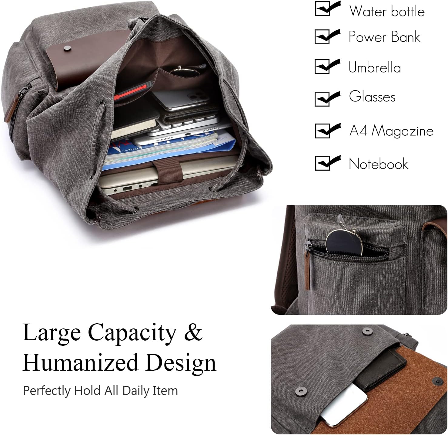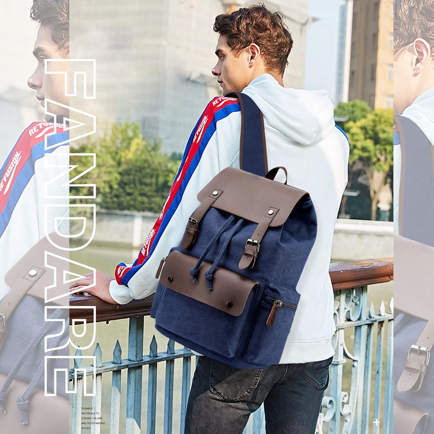 • Hochwertiges Material - Der FANDARE Canvas Rucksack besteht aus Canvas mit Lederbesatz. Sorgen Sie täglich und am Wochenende für eine sichere und dauerhafte Nutzung. Rucksack mit U-förmigem, dreidimensionalem Belüftungsdesign am Rücken hilft für